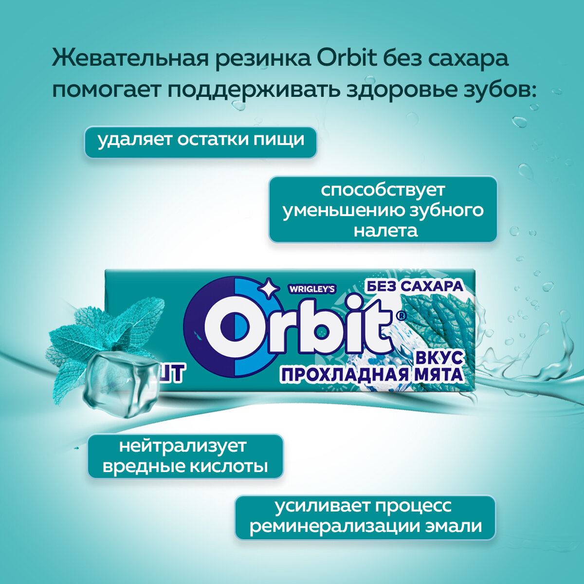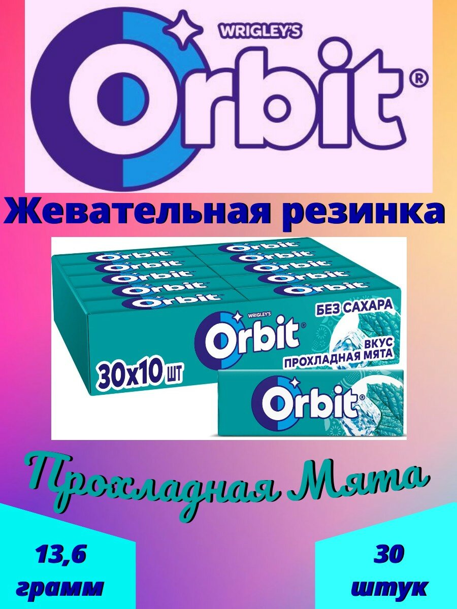 СохранитьЖевательная резинка ORBIT Без сахара со вкусом "Прохладная Мята" 30 шт. х 13.6 гр. Большая упаковка интересное: