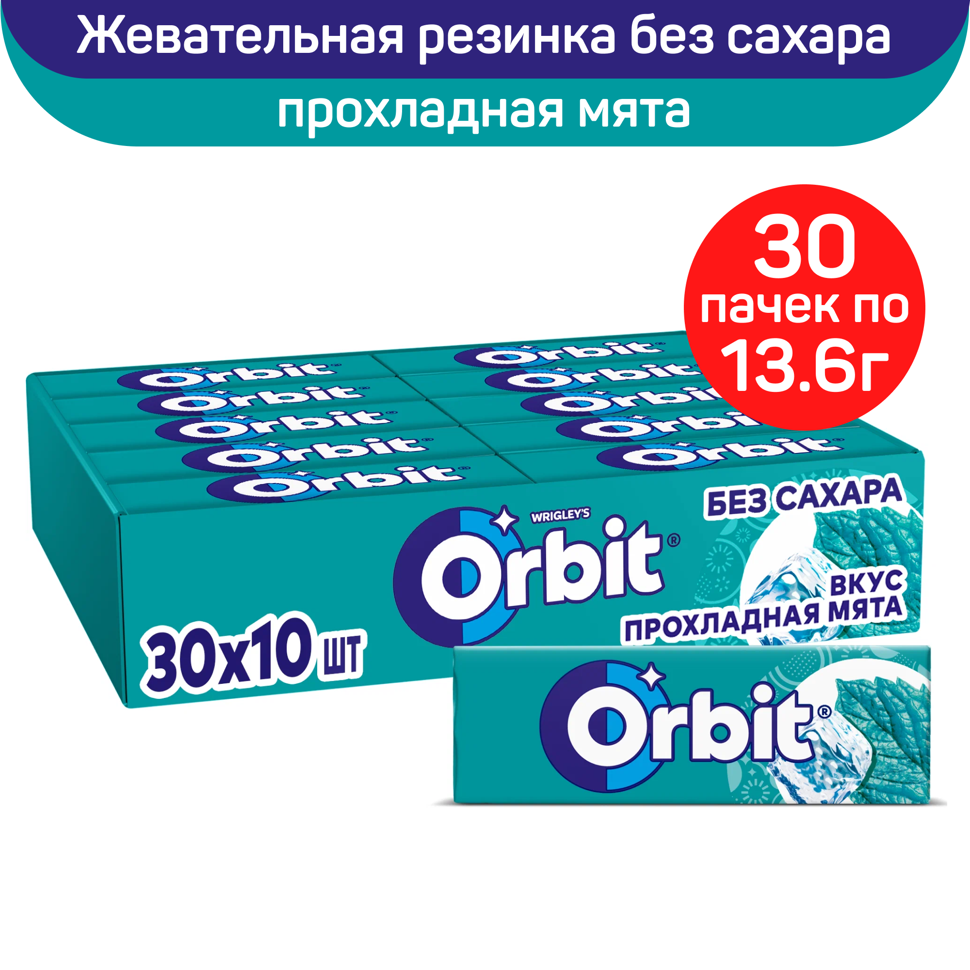 Orbit жевательная резинка без сахара "Прохладная мята", 30 пачек по 13,6 гр