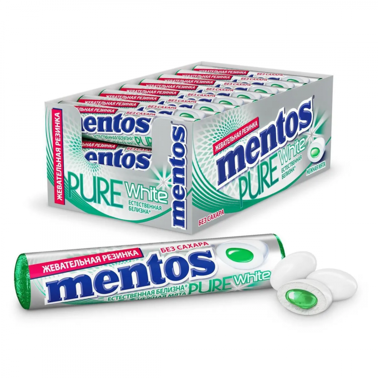 Жевательная резинка Mentos Pure White Клубника, 15,5 г х 24 шт