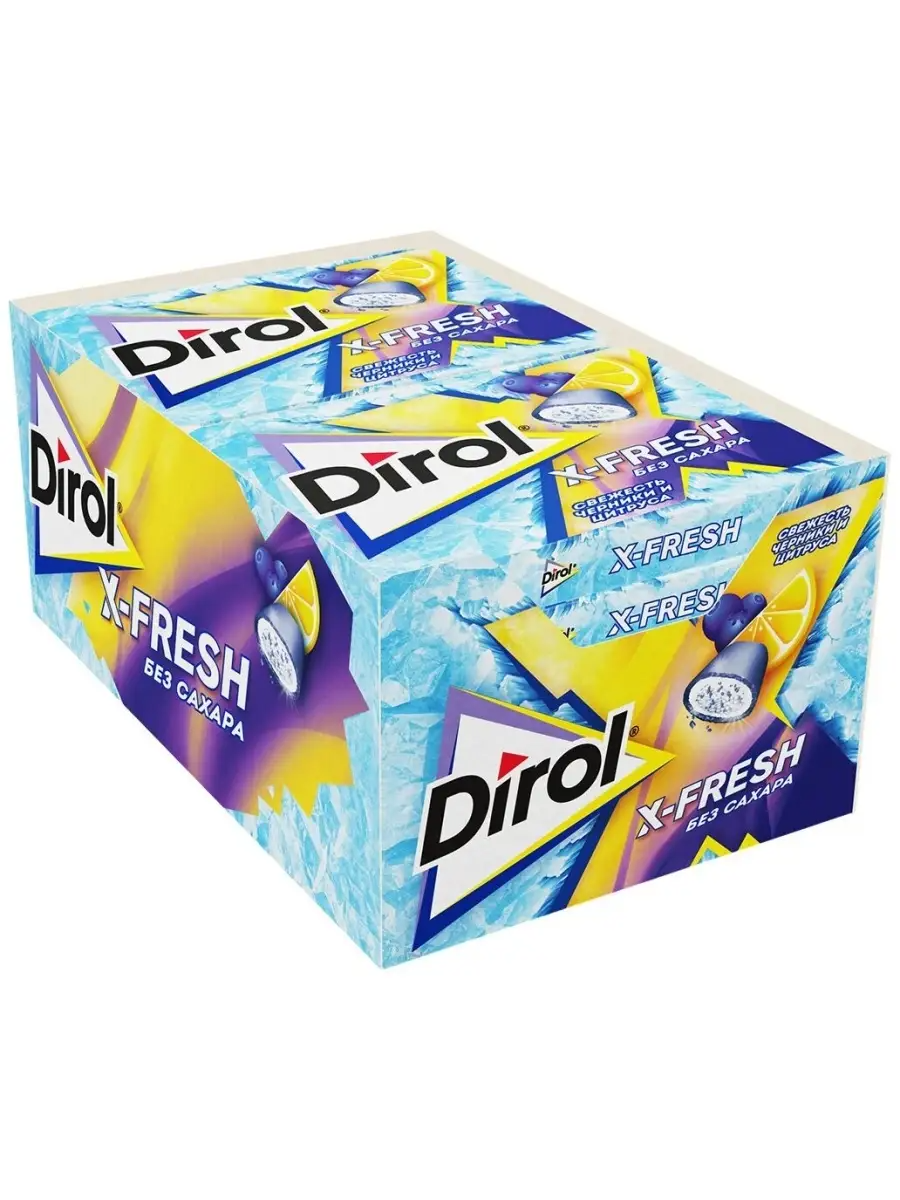 Купить Dirol X-Fresh "Свежесть черники и цитруса" 12 пачек по 16 г