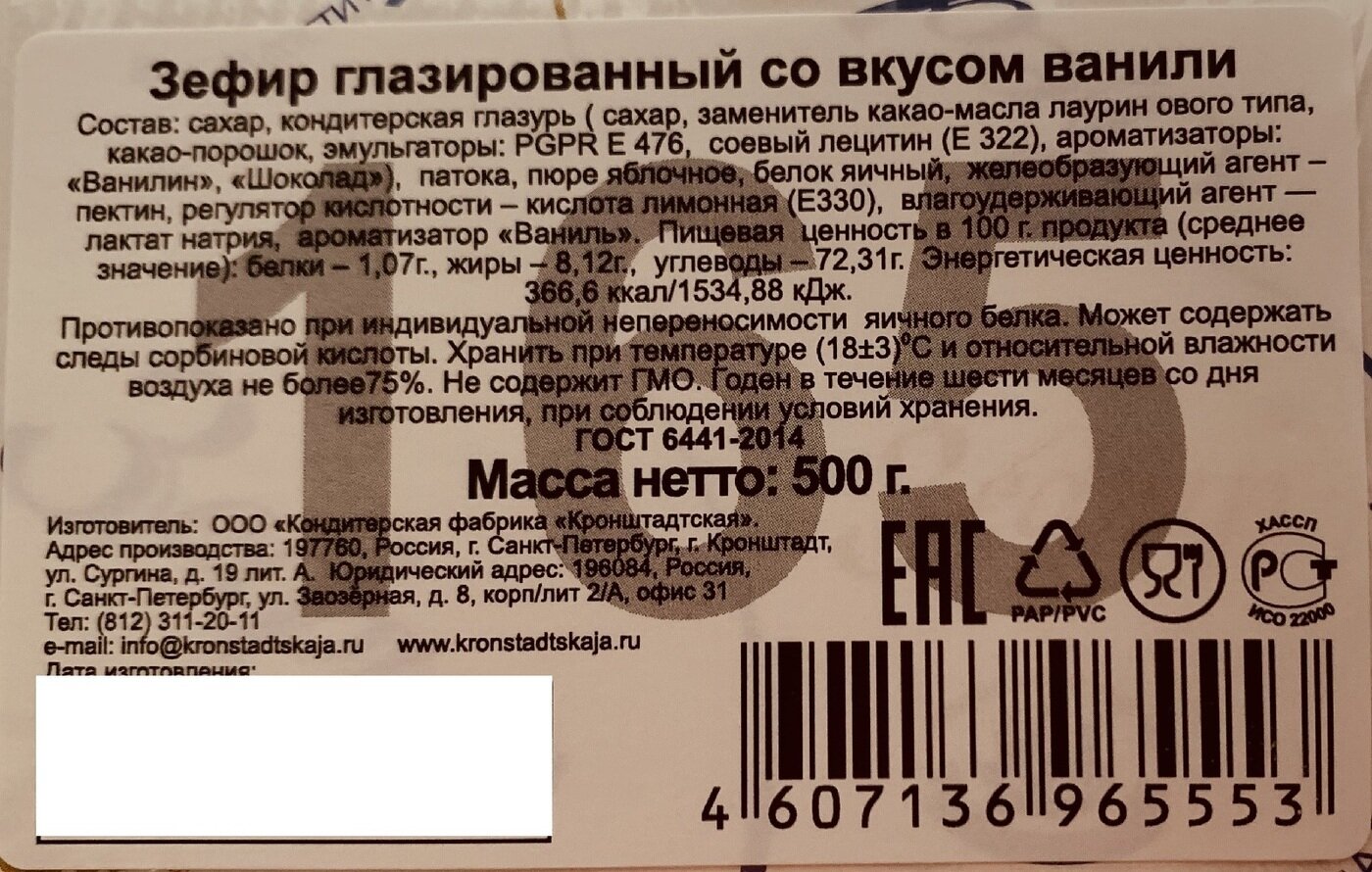 Зефир "Ванильный" глазированный КФ кронштадтская, 500г интересное: