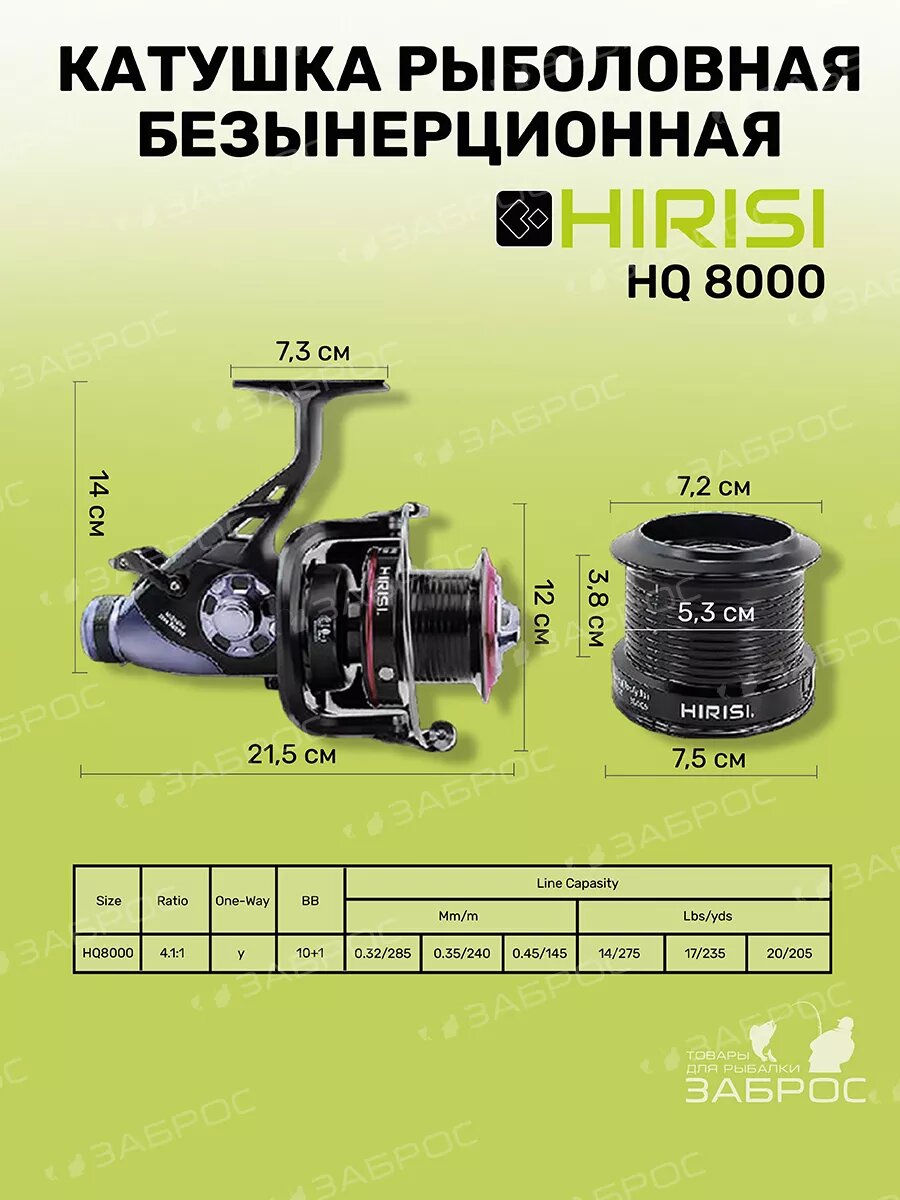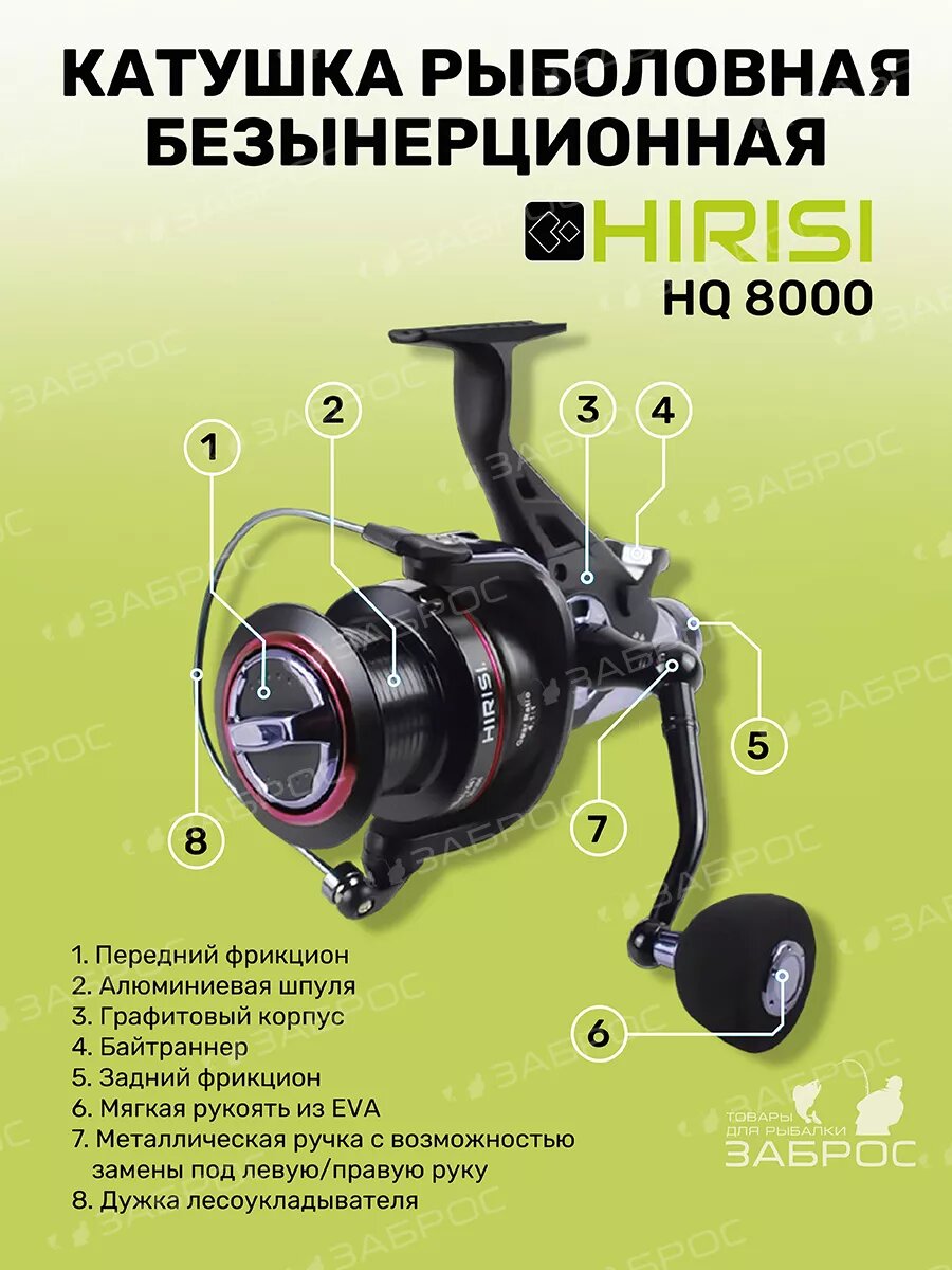 Катушка для рыбалки безынерционная рыболовная Hirisi HQ 8000