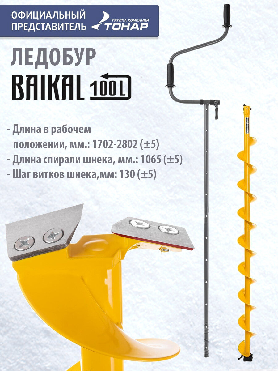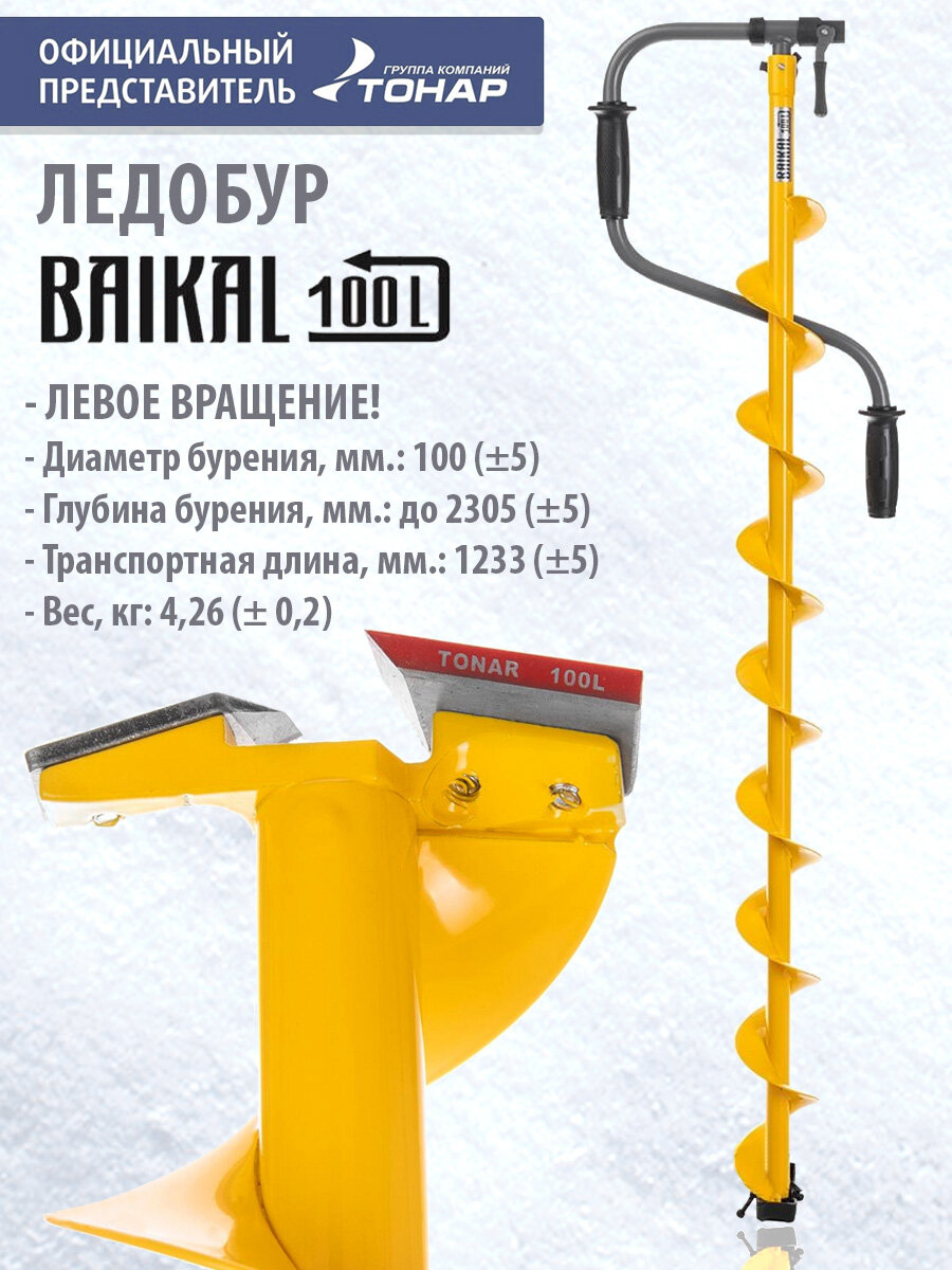 Ледобур BAIKAL 130L левое вращение, L шнека1065мм, глубина 2,3м, цельнотянутый шнек (LBA-130L) Тонар интересное: