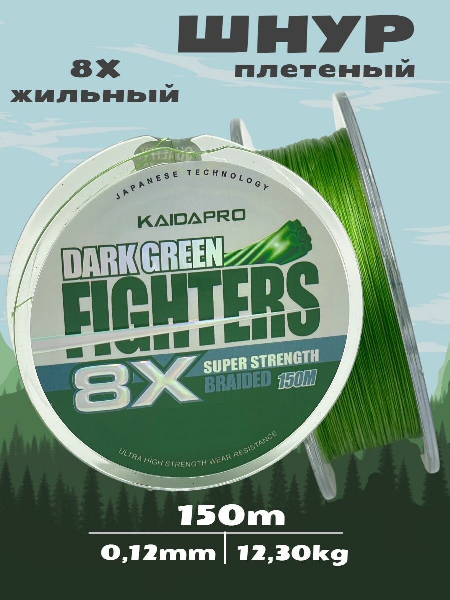 Шнур плетёный Dark Green Fighter 8X Kaida 0.12 мм тест 12,3 кг 150 м