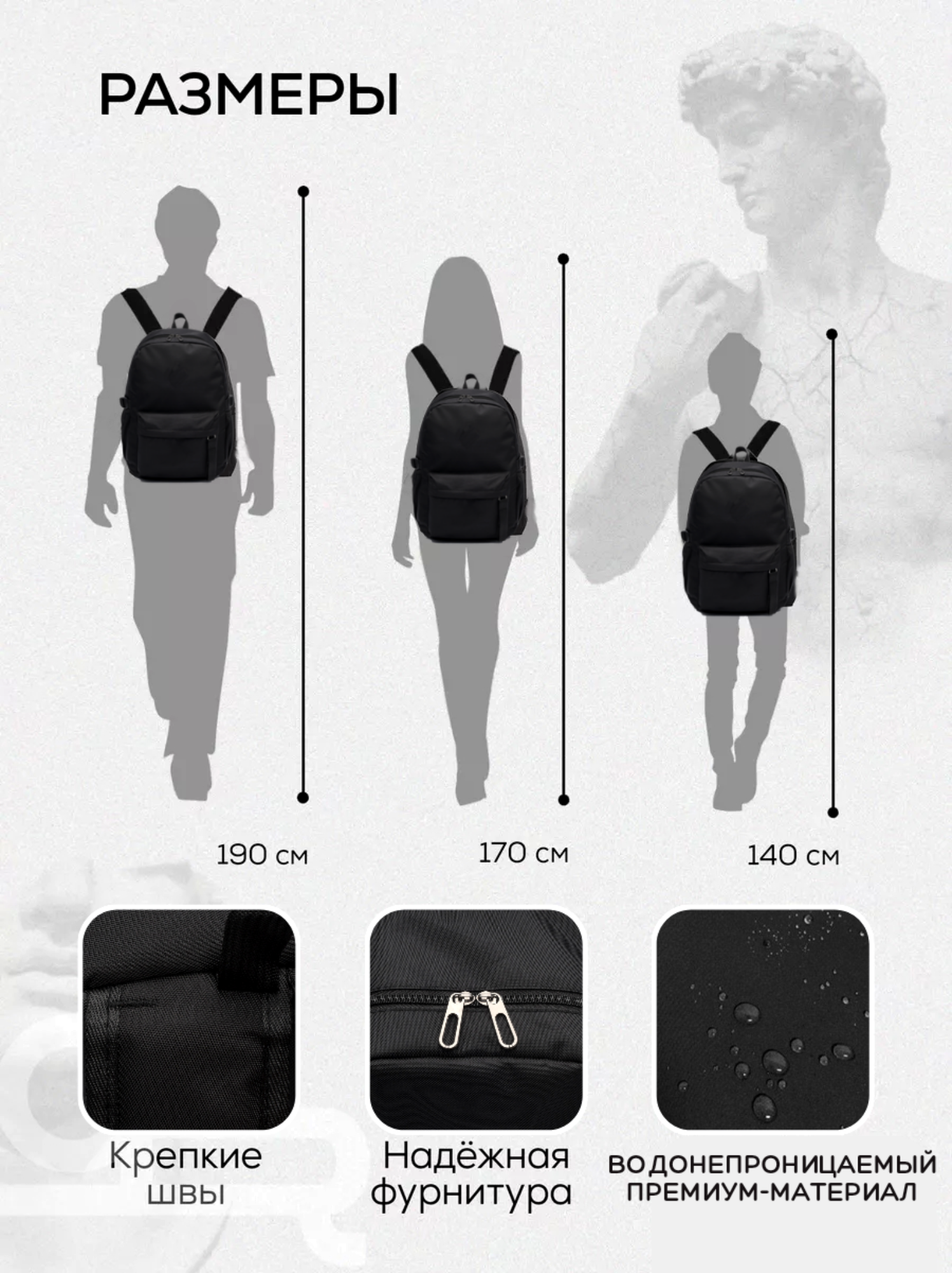 Рюкзак черный мужской, женский, школьный, спортивный, повседневный, городской, для путешествий и тренировок