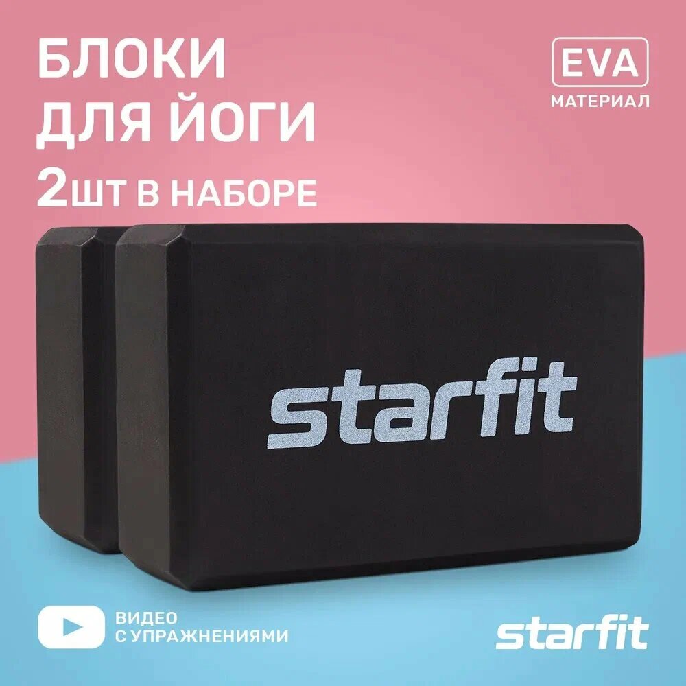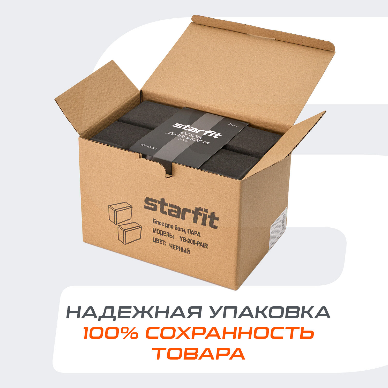 Купить Блок для йоги STARFIT YB-200 EVA с логотипом, 8 см, 115 гр, 22,5х15 см, черный, пара