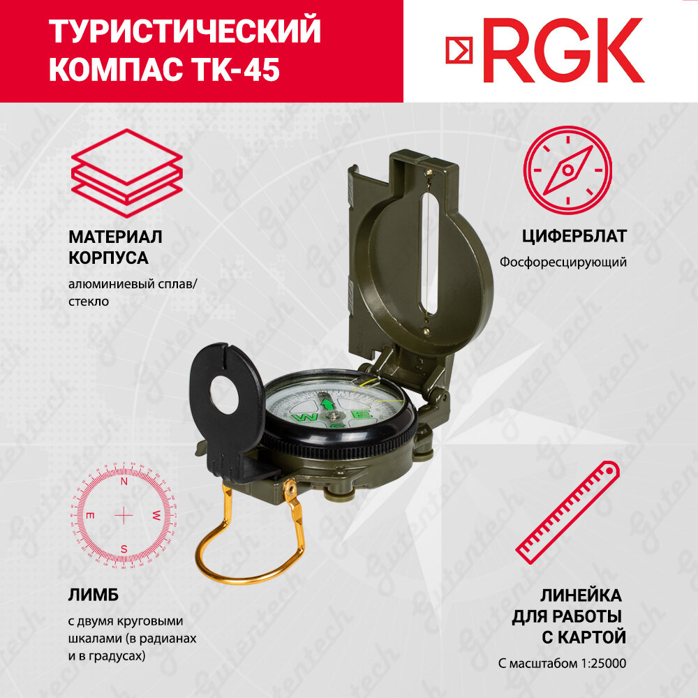 Компас туристический RGK TK-45, алюминиевый корпус / капусла с гелем / линза (арт. 776233)