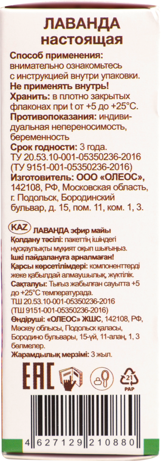 | Состав | 100% эфирное масло лаванды настоящей |