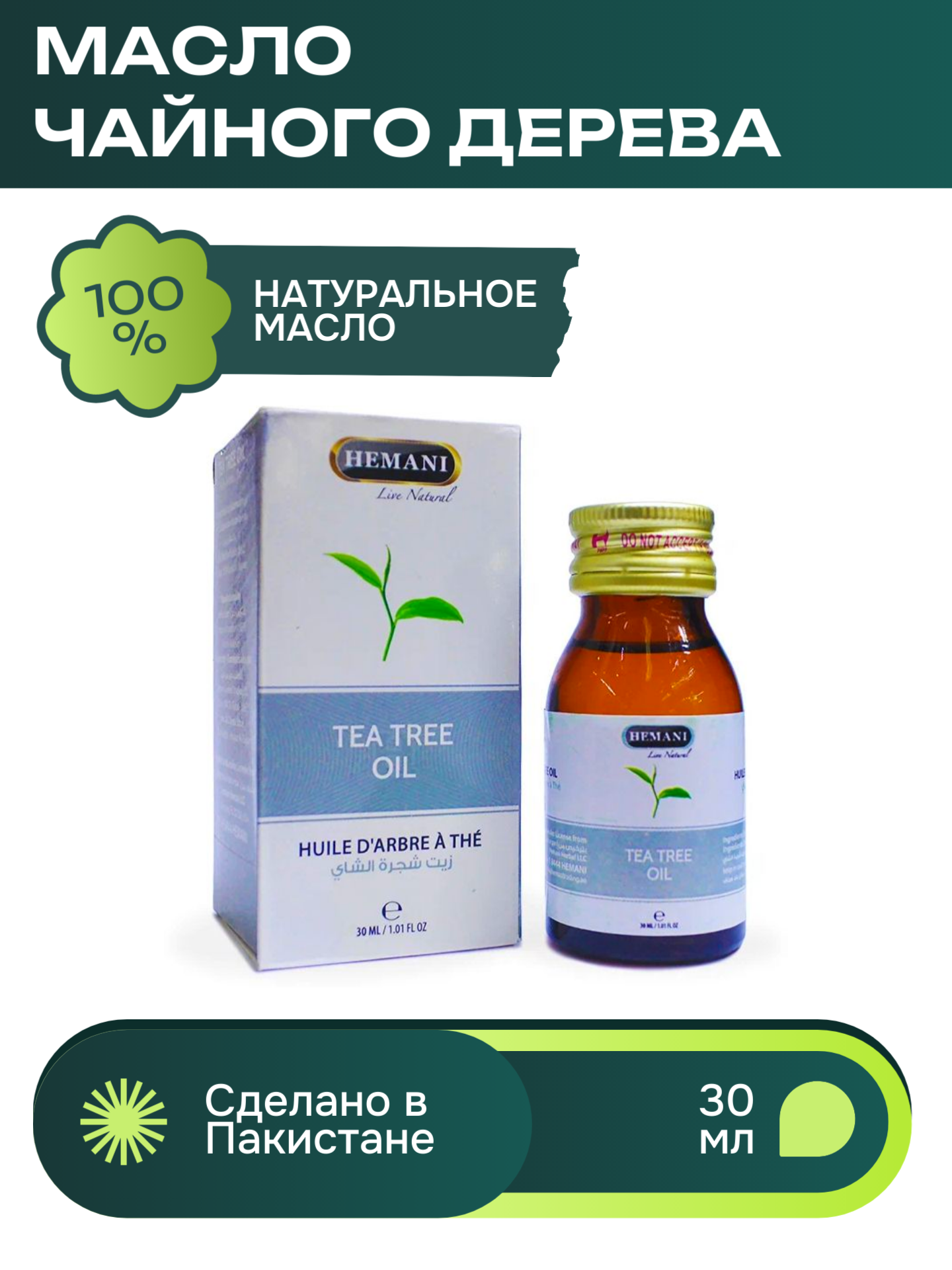 HEMANI Масло Чайного дерева Tea tree oil, 30 мл.