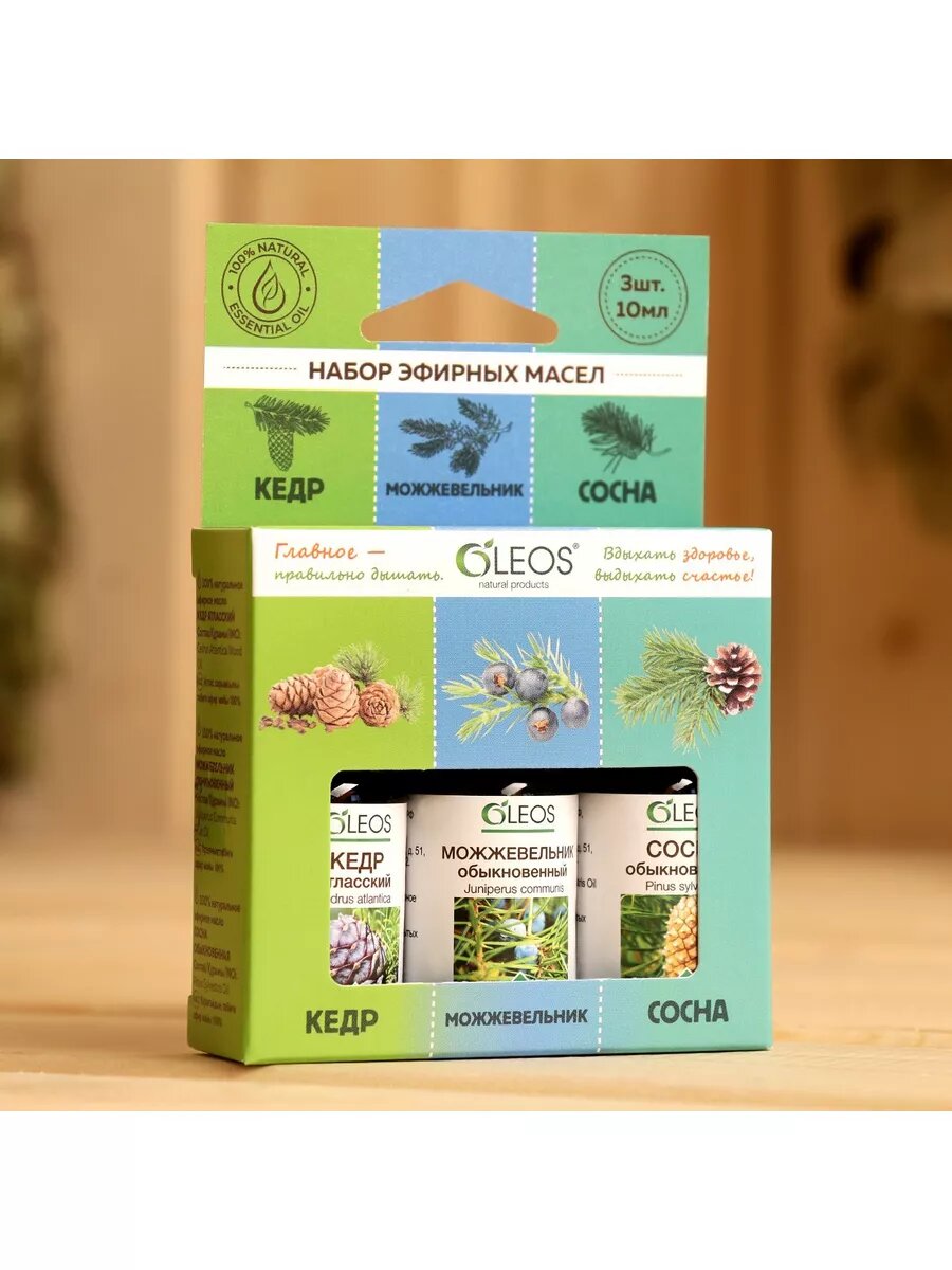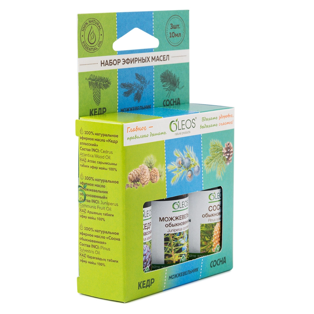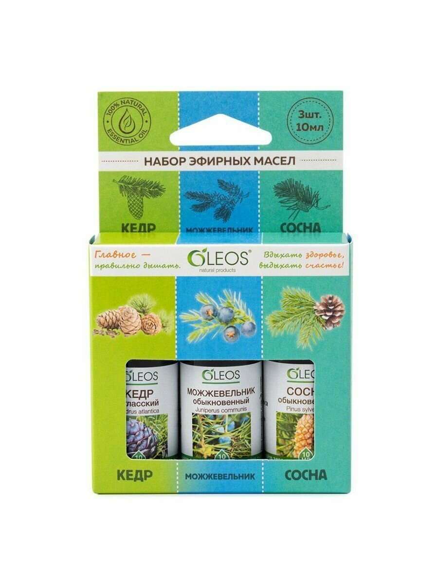 Купить OLEOS набор эфирных масел Кедр, Можжевельник, Сосна, 10 мл х 3 шт., 1 шт.