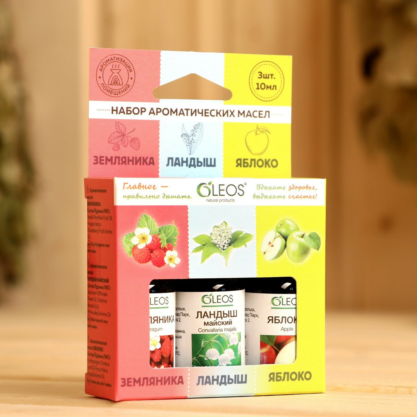 Набор ароматических масел Oleos Земляника, Ландыш, Яблоко, 10 мл .