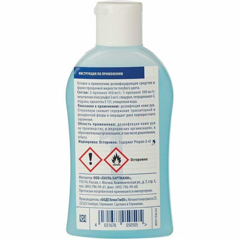 | Способ применения | взять флакон в правую руку (для левшей в левую) и открыть верхнюю крышку большим пальцем;налить в ладонь 2-3 мл антисептика;тщательно втереть жидкость в кожу кистей рук, пальцев и запястий до полного высыхания;как правило, весь процесс занимает около 30 секунд; |