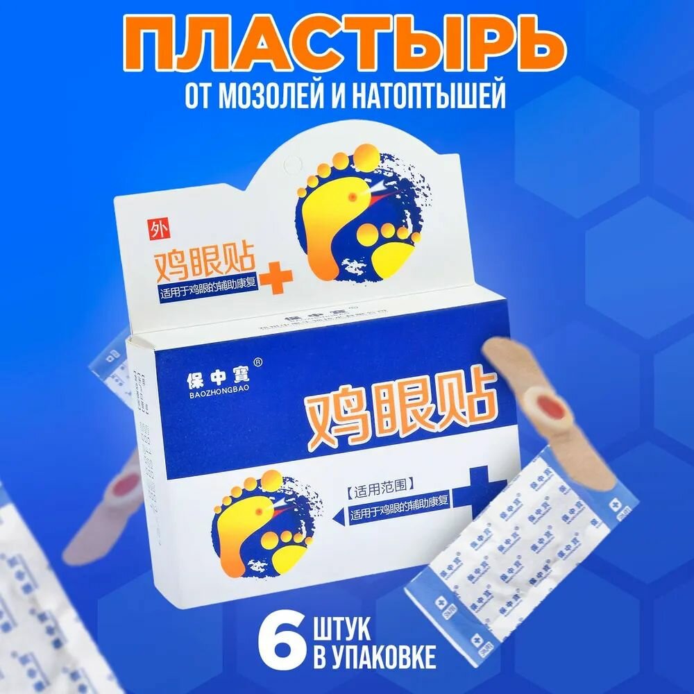 Пластырь от сухих мозолей, натоптышей, шипиц и бородавок Baozhongbao,1 упаковка по 6шт