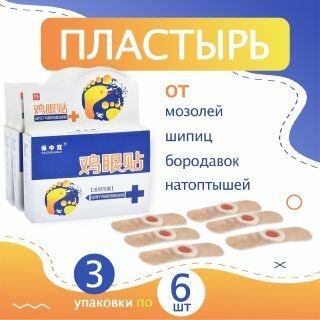 Купить 3 упаковки по 6 шт. Пластырь от сухих мозолей, натоптышей, шипиц и бородавок Baozhongbao