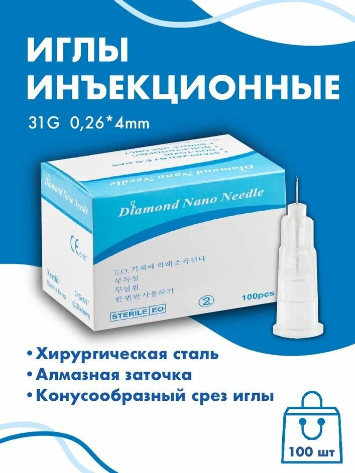 Игла инъекционная 100 шт/уп, 31G (0,26 х 4 мм), DIAMOND NANO NEEDLE