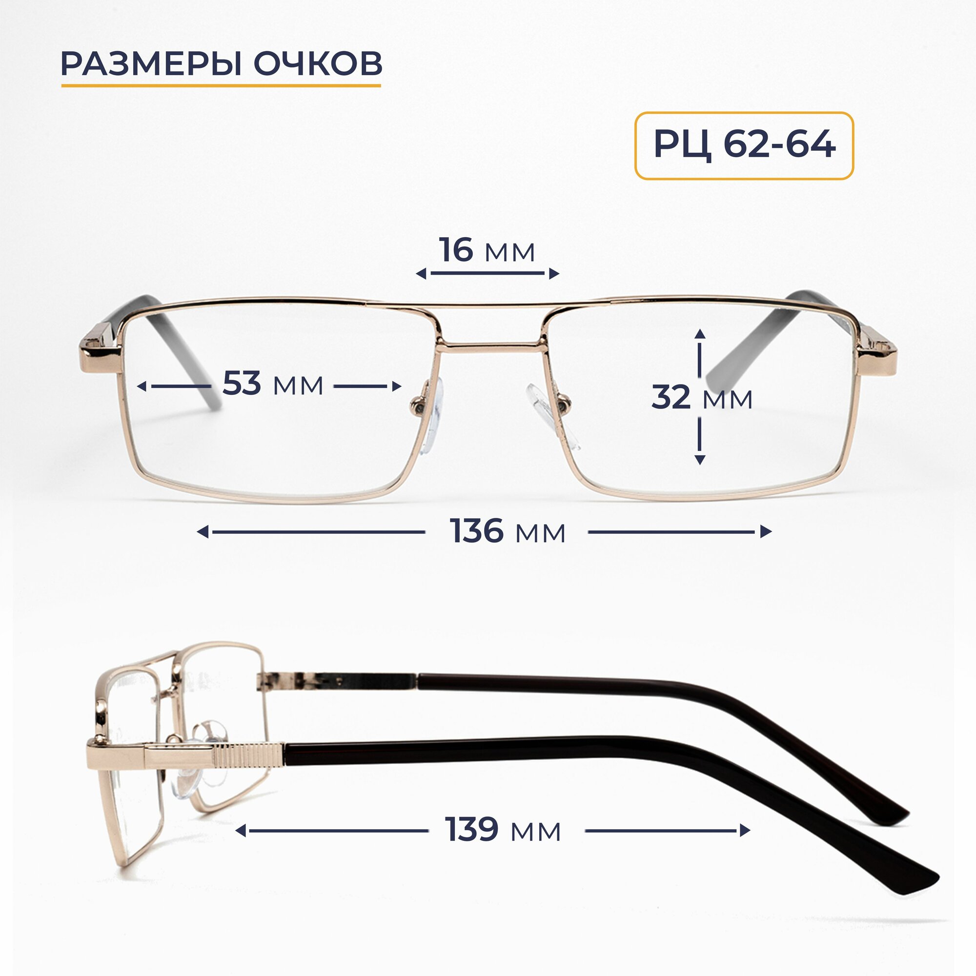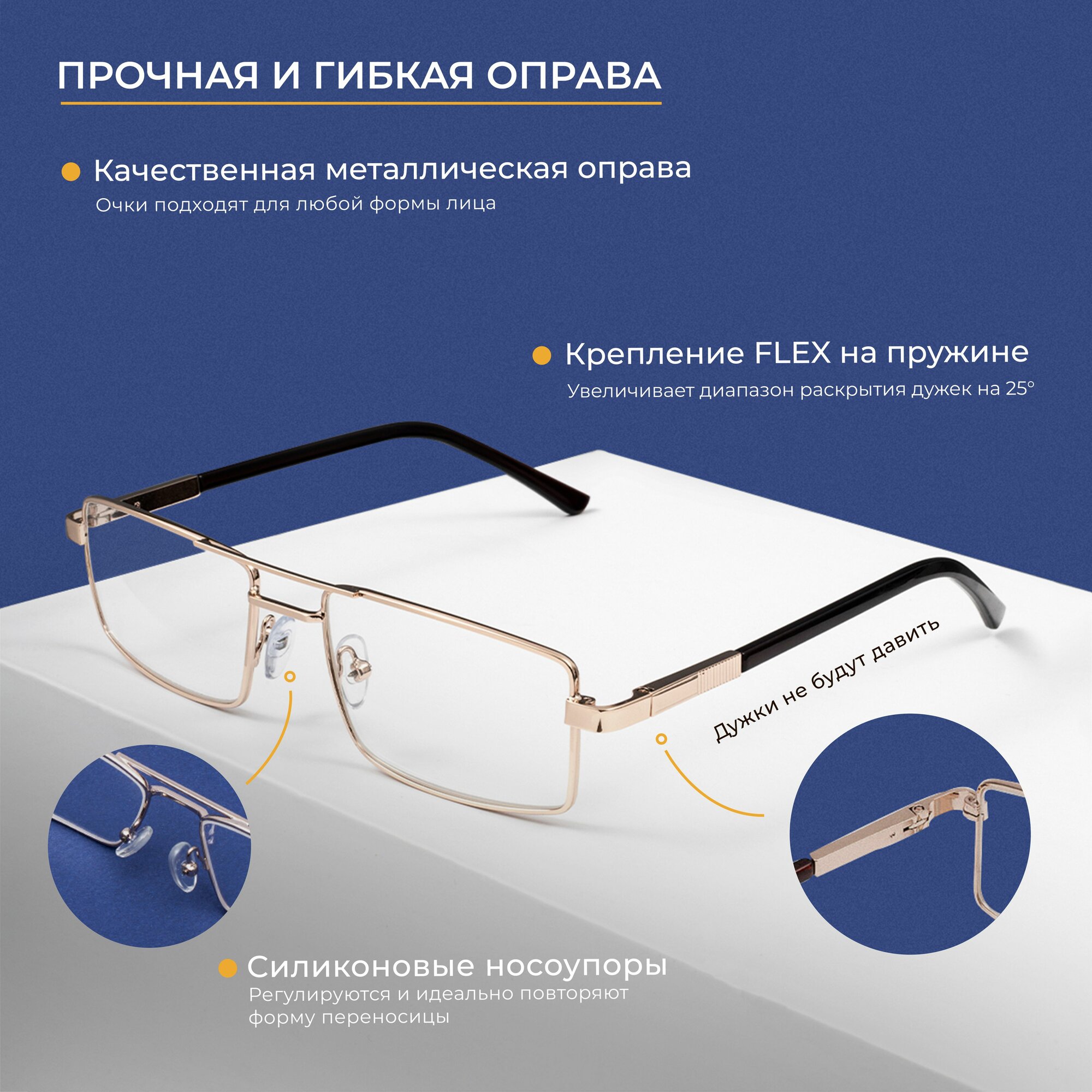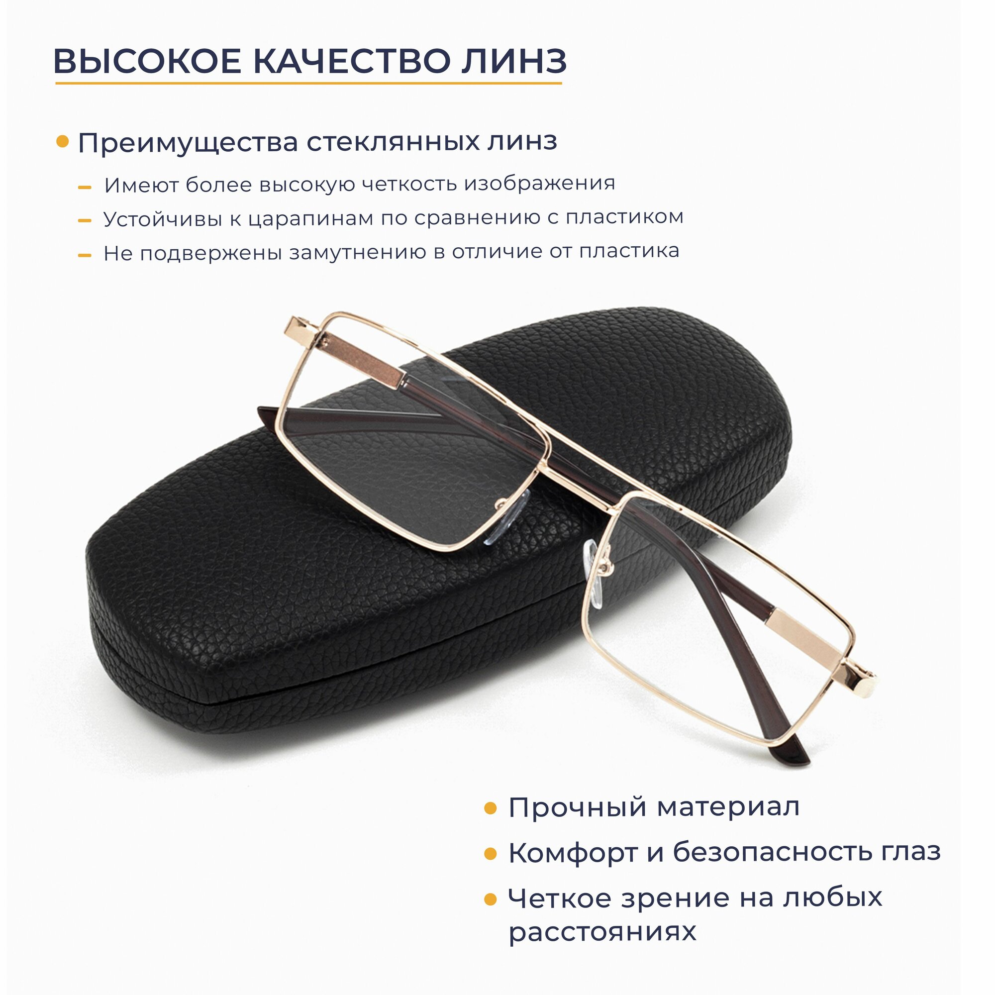 Очки для чтения мужские с футляром (+1.50) мост 123 M1, линза стекло, цвет золотой, РЦ62-64