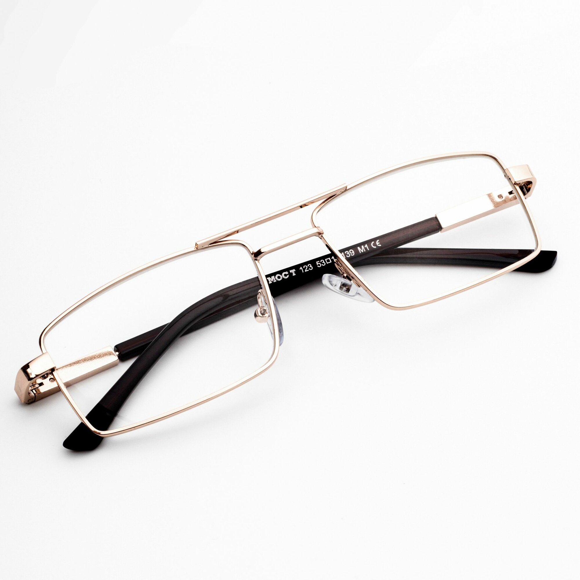 Готовые очки для чтения мужские с футляром (+1.25) мост 123 M1, линза стекло, цвет золотой, РЦ 62-64