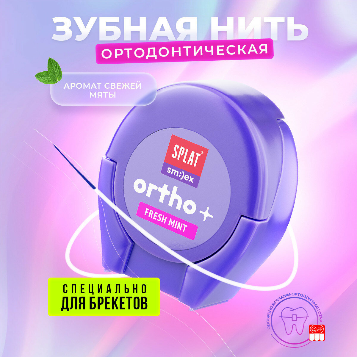 Объемная ортодонтическая зубная нить SPLAT Smilex ORTHO+ со вкусом мяты 30 шт интересное: