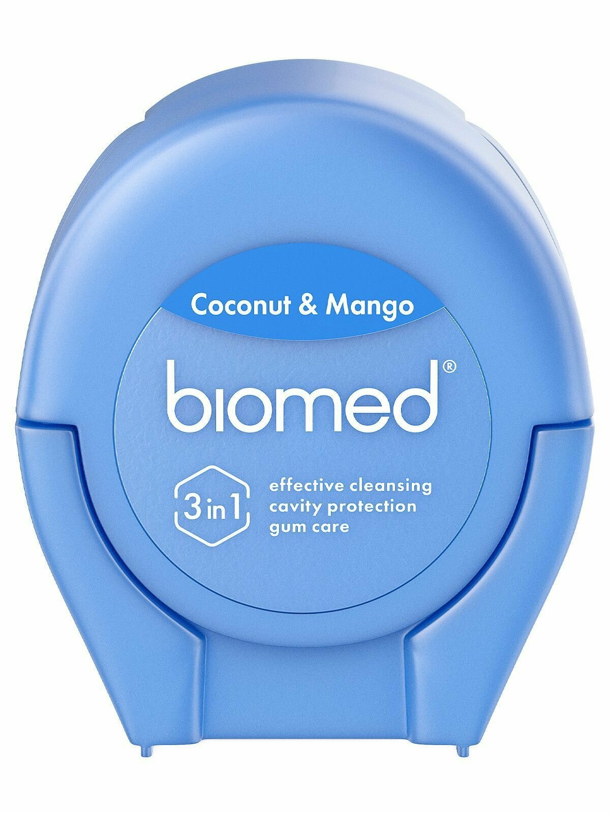 Зубная нить Biomed защита от кариеса с ароматом кокоса и манго 50м