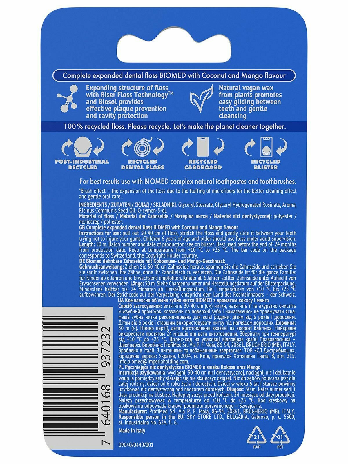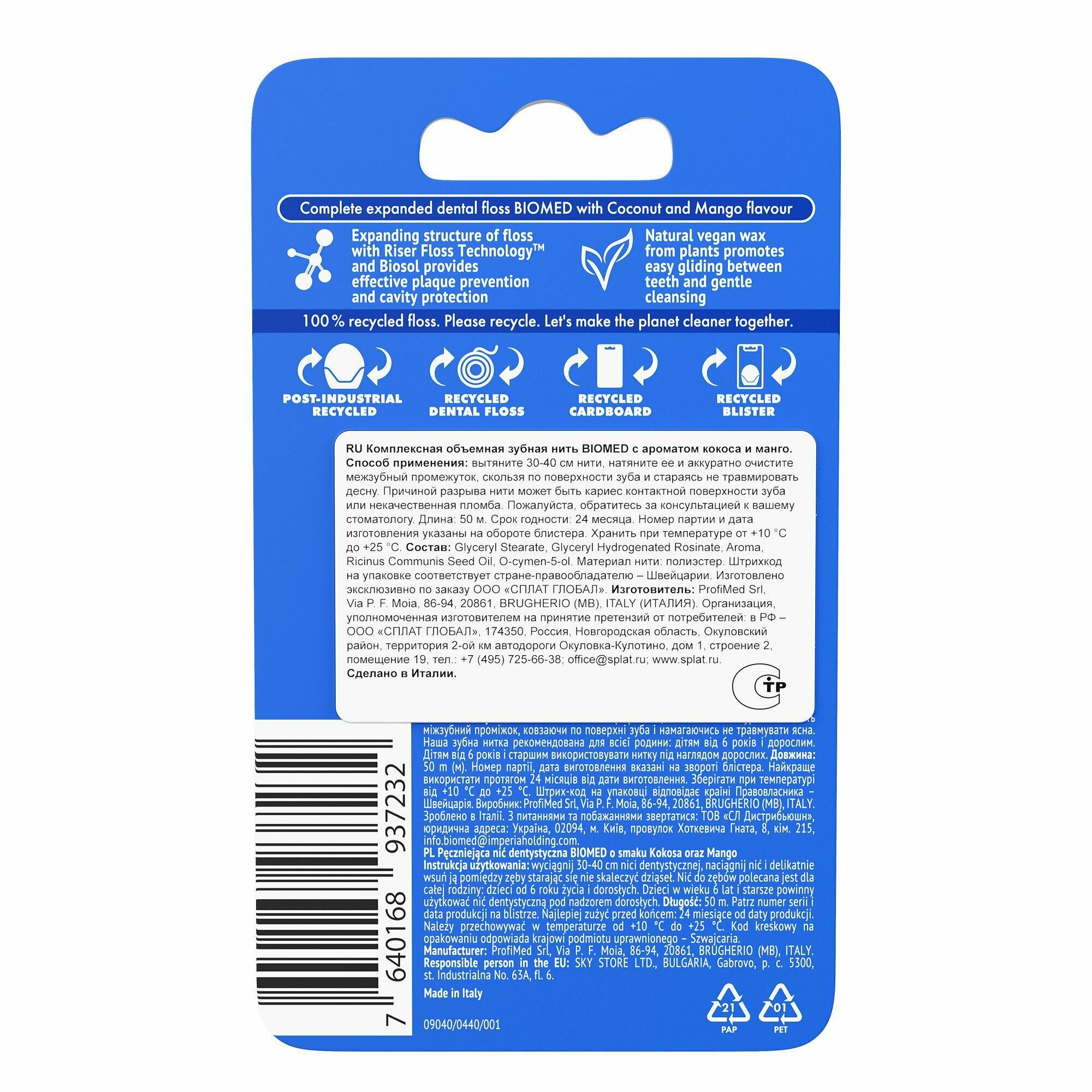 Комплексная объемная зубная нить BIOMED с ароматом кокоса и манго.50 м
