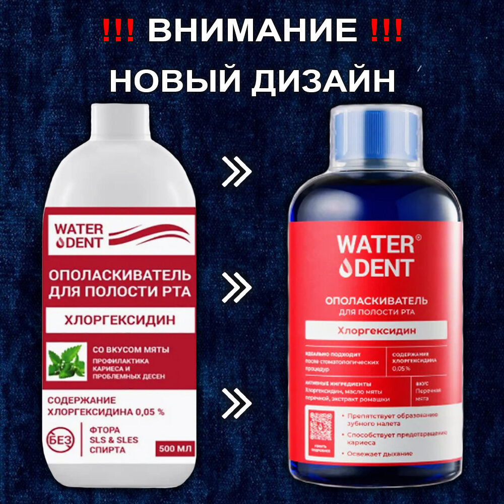 WATERDENT / Ополаскиватель для рта Хлоргексидин 0,05% / Со вкусом мяты / 500 мл интересное: