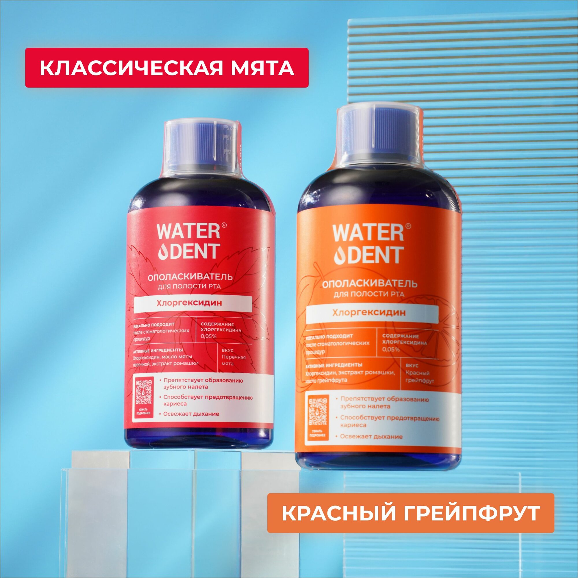 Ополаскиватель для полости рта WATERDENT / Хлоргексидин 0,05% / Со вкусом мяты / 500 мл