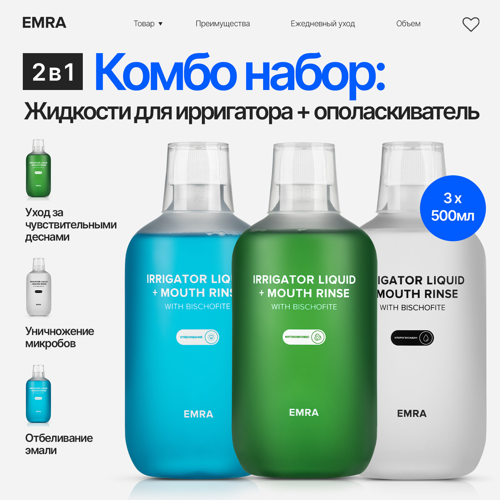 EMRA / Набор жидкостей для ирригатора (ополаскиватели для рта) 2 в 1 интересное: