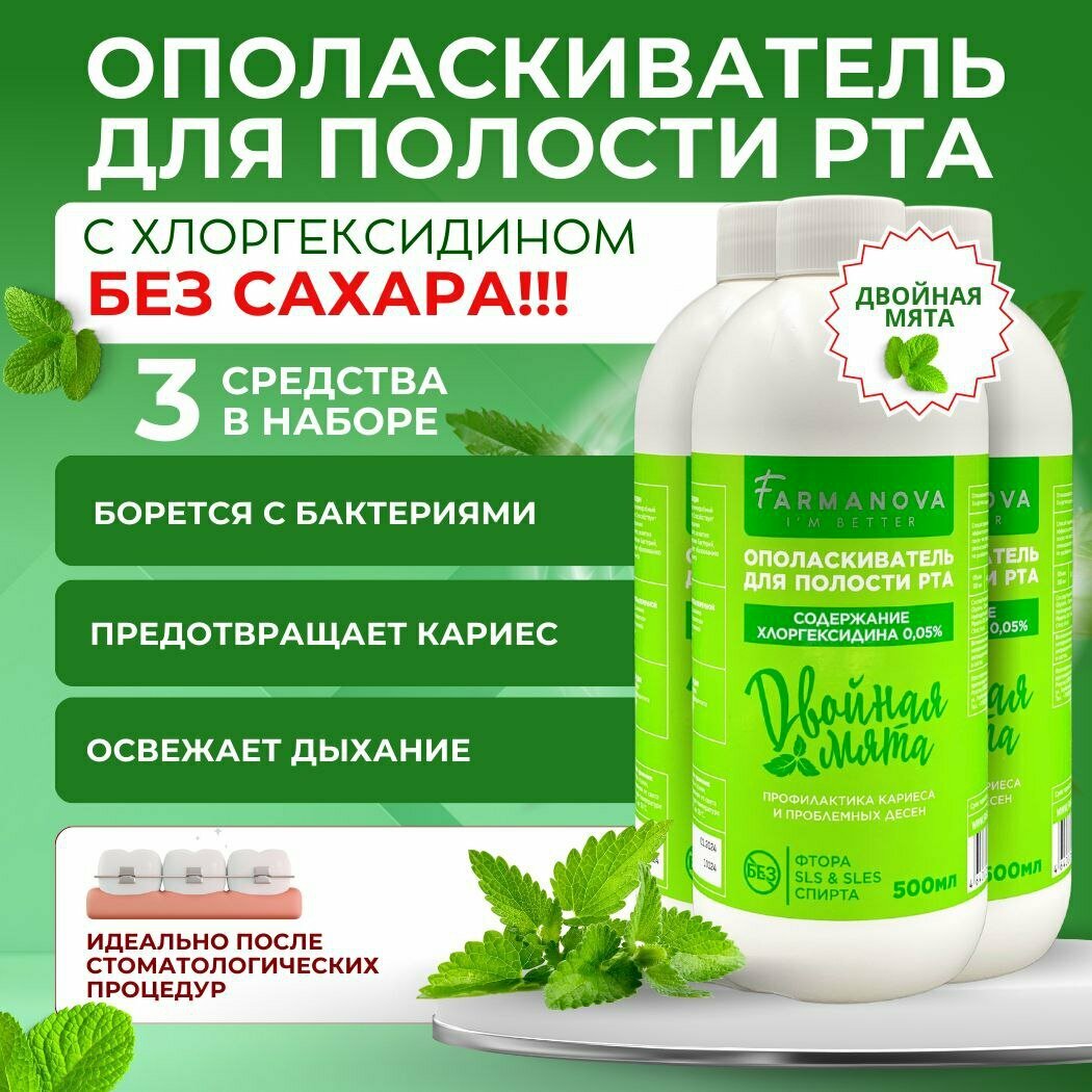 Купить 500 мл х 3 шт. Ополаскиватель для полости рта хлоргексидин 500 мл со вкусом Двойной мяты / Ополаскиватель / Для полости рта