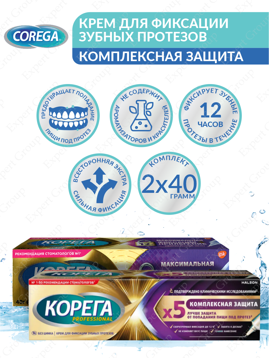 Корега Professional Комплексная защита крем для фиксации зубных протезов, 40 г 2шт