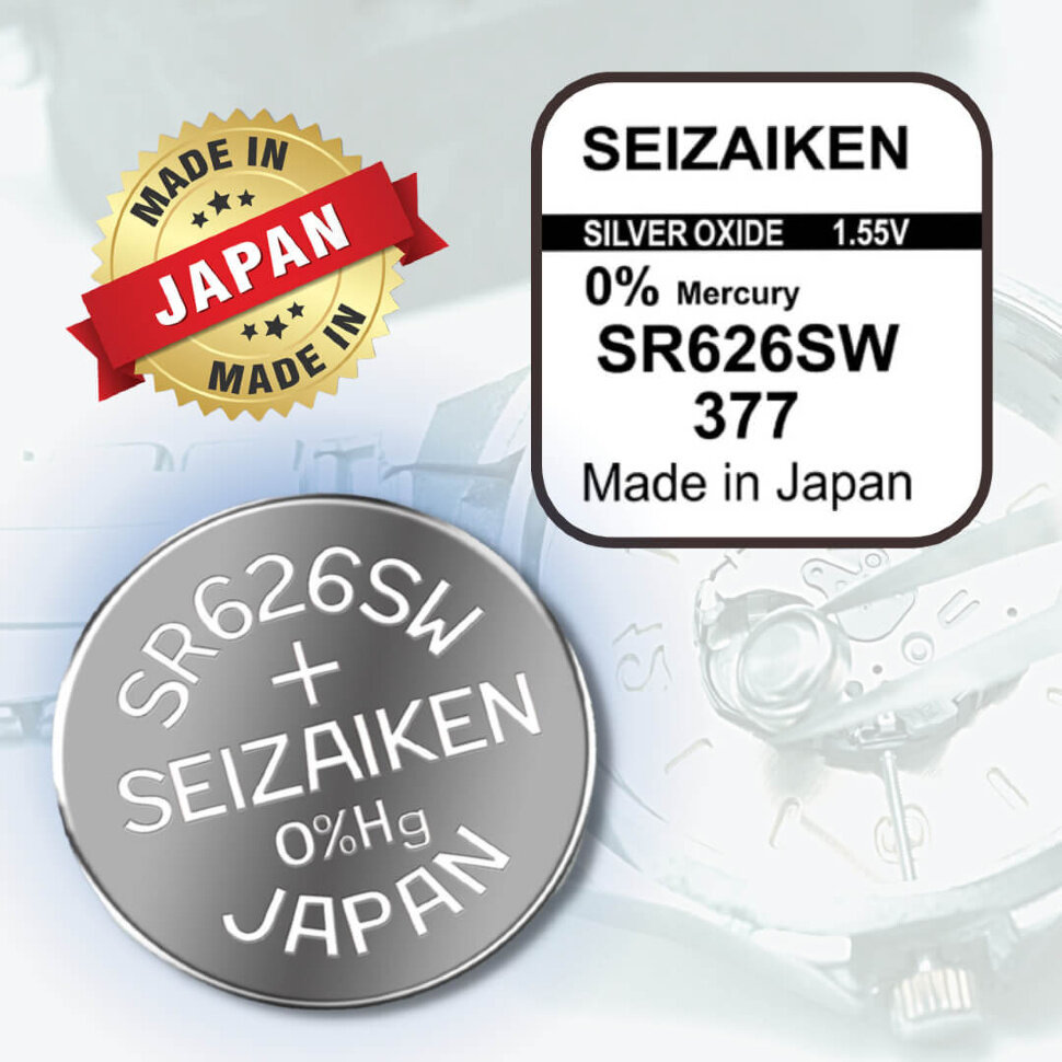Батарейка SEIKO Seizaiken 377 (SR626SW, SR66, AG4), 5 шт.