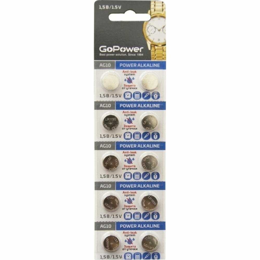 00-00017857 Alkaline Элемент питания G10/LR1130/LR54/389A/189 1.5В, 10шт, GoPower интересное: