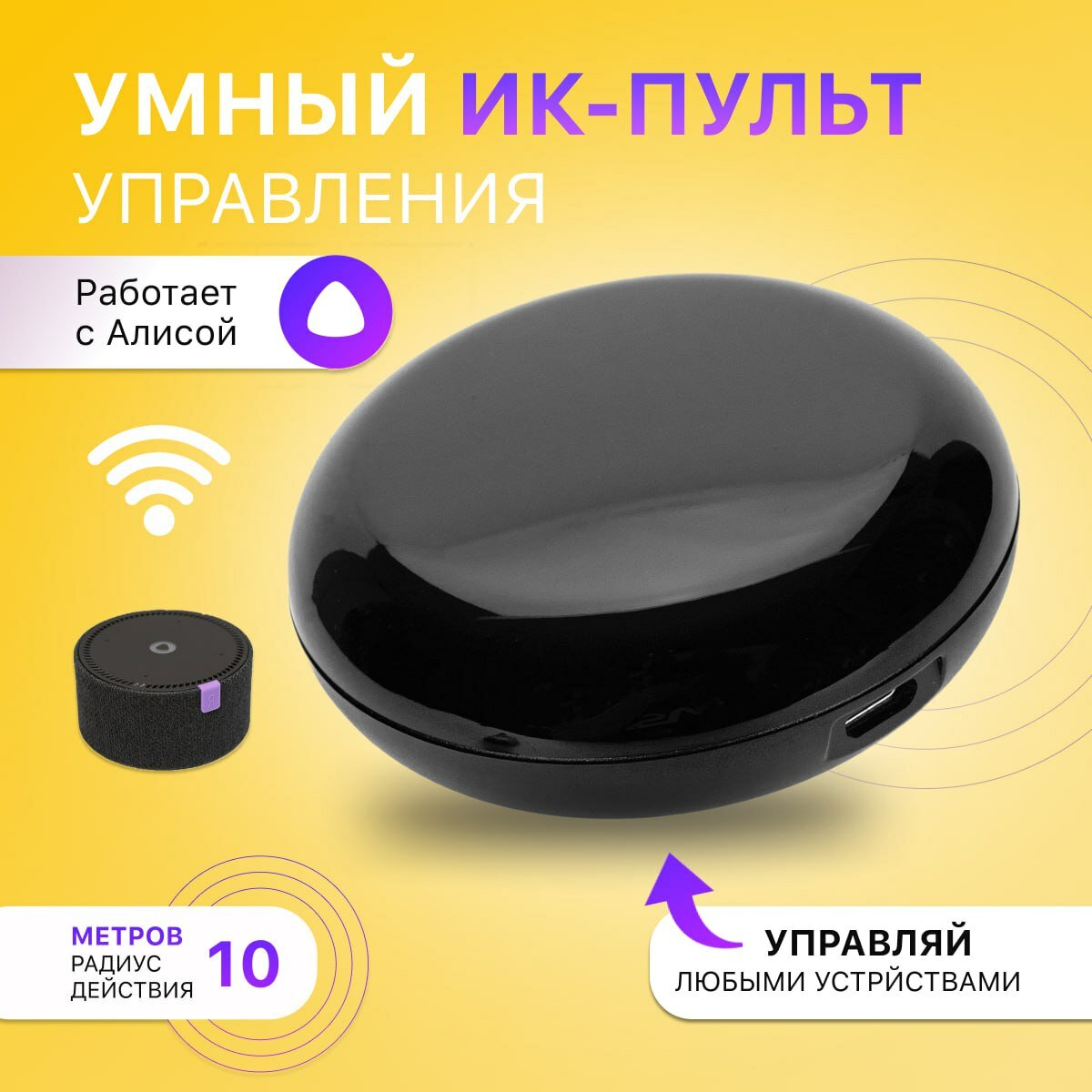 Умный пульт для Алисы Easy Tech, Wi-Fi, ИК пульт дистанционного управления 10 метров, черный