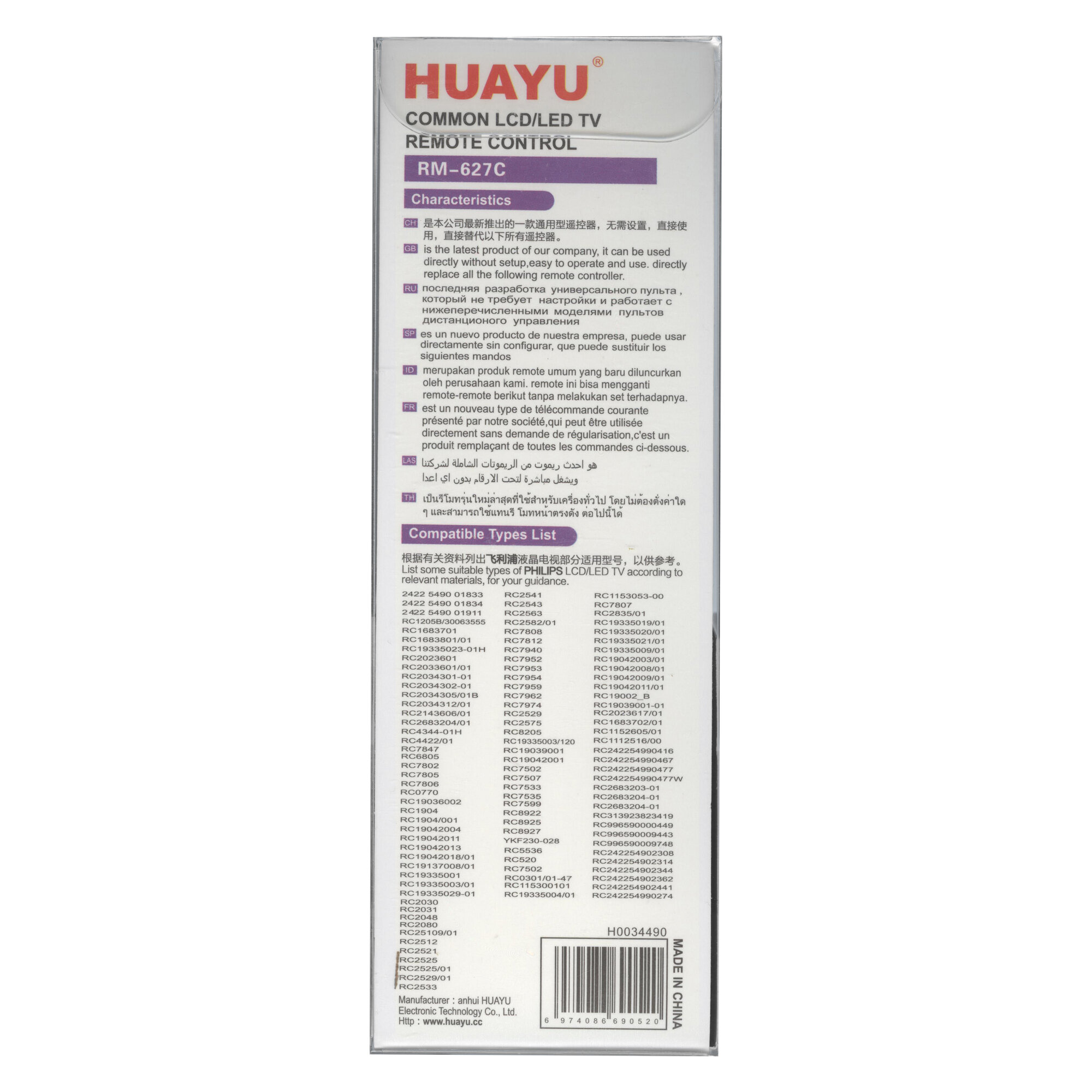 Пульт универсальный Huayu для Philips RM-627C