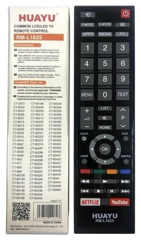 Универсальный пульт Huayu RM-L1625 (CT-8547) для телевизоров Toshiba / Тошиба ! интересное: