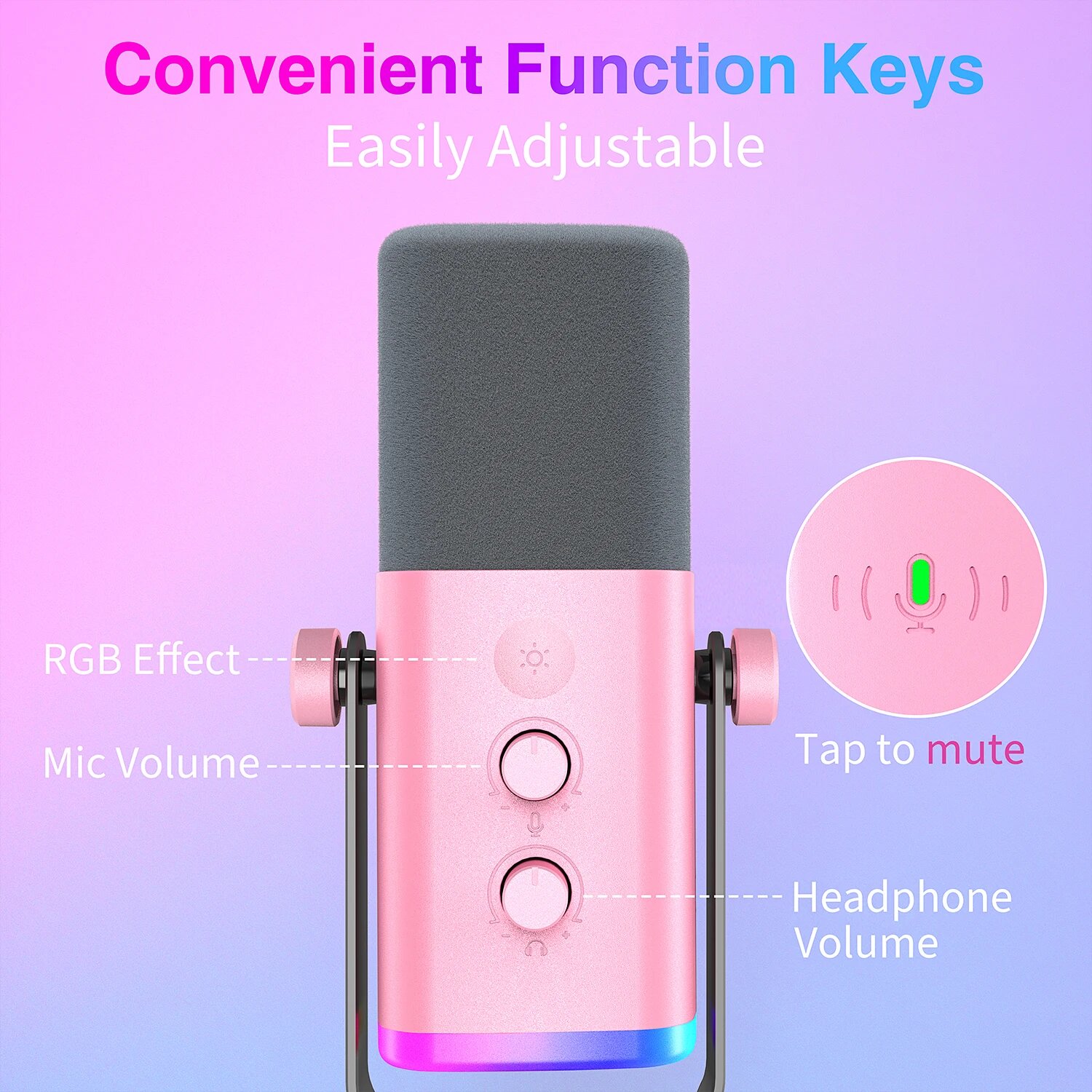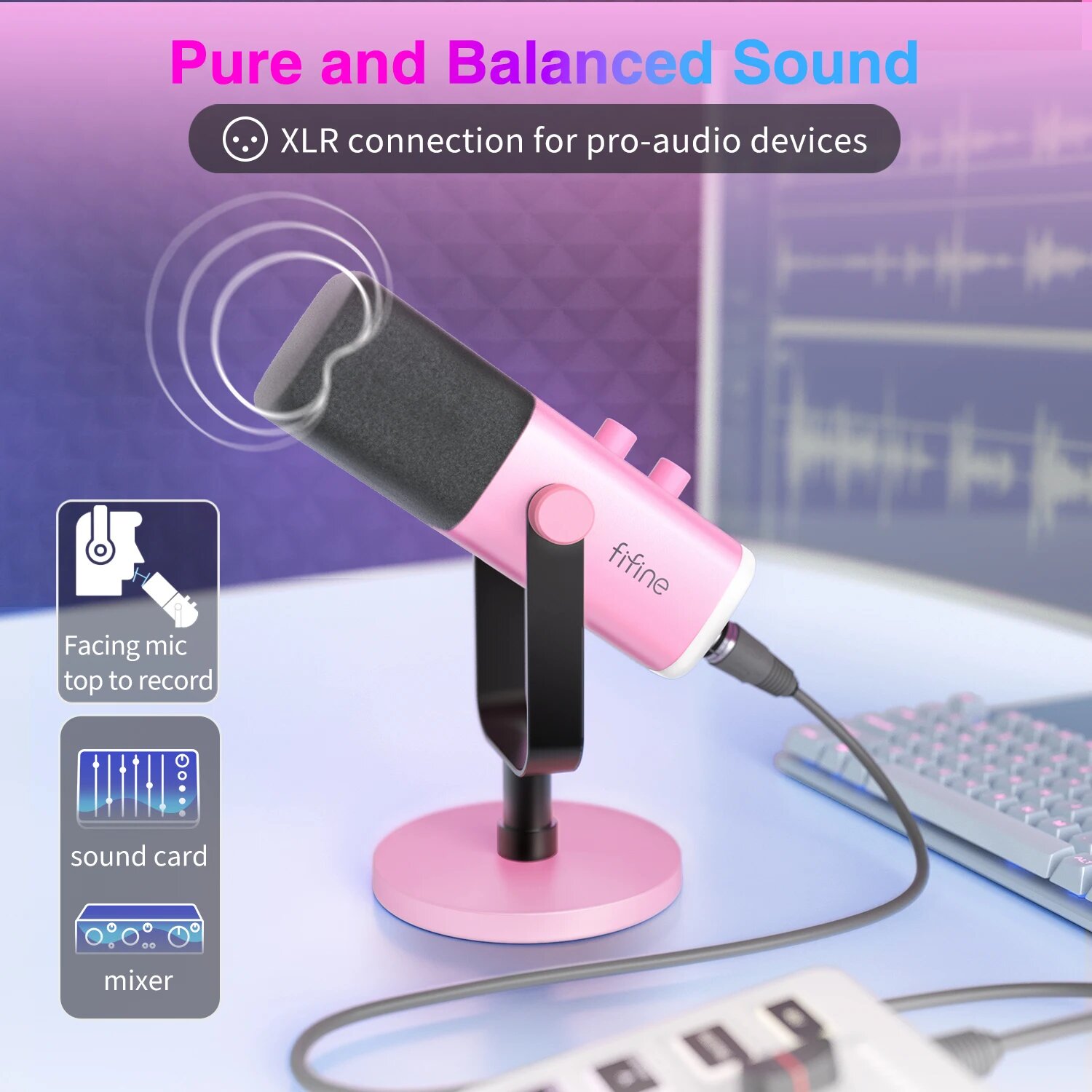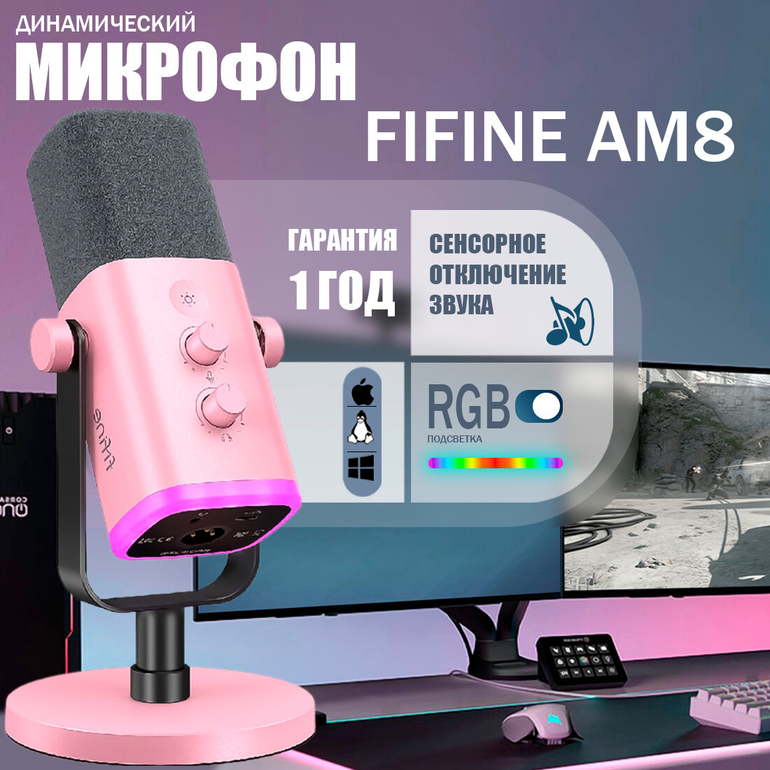 FIFINE AM8P USB/XLR игровой микрофон с RGB подсветкой, Розовый