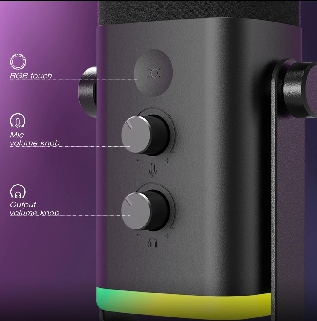 Проводной микрофон Fifine AM6, черный, игровой, USB, RGB-подсветка