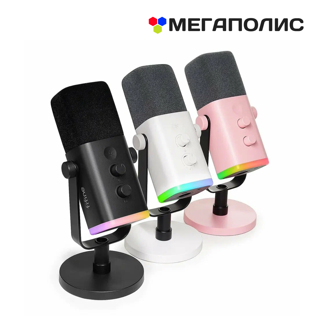 Проводной микрофон Fifine AM6, белый, игровой, USB, RGB-подсветка