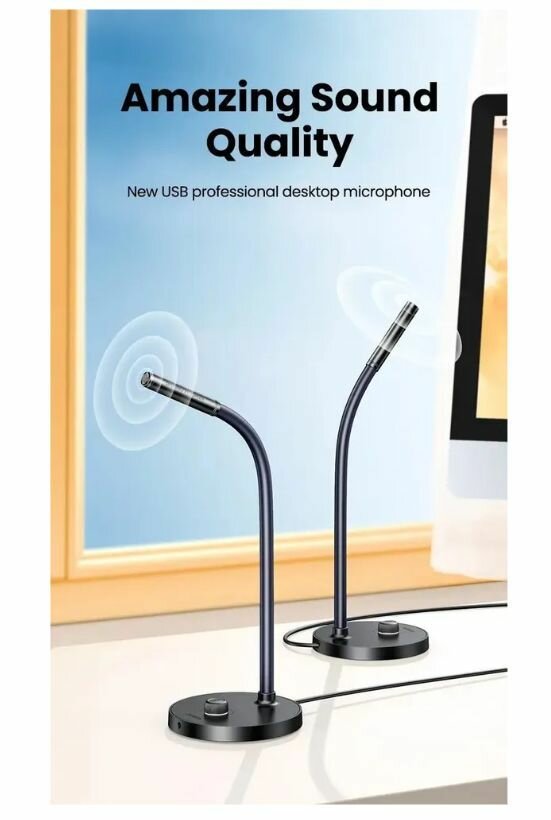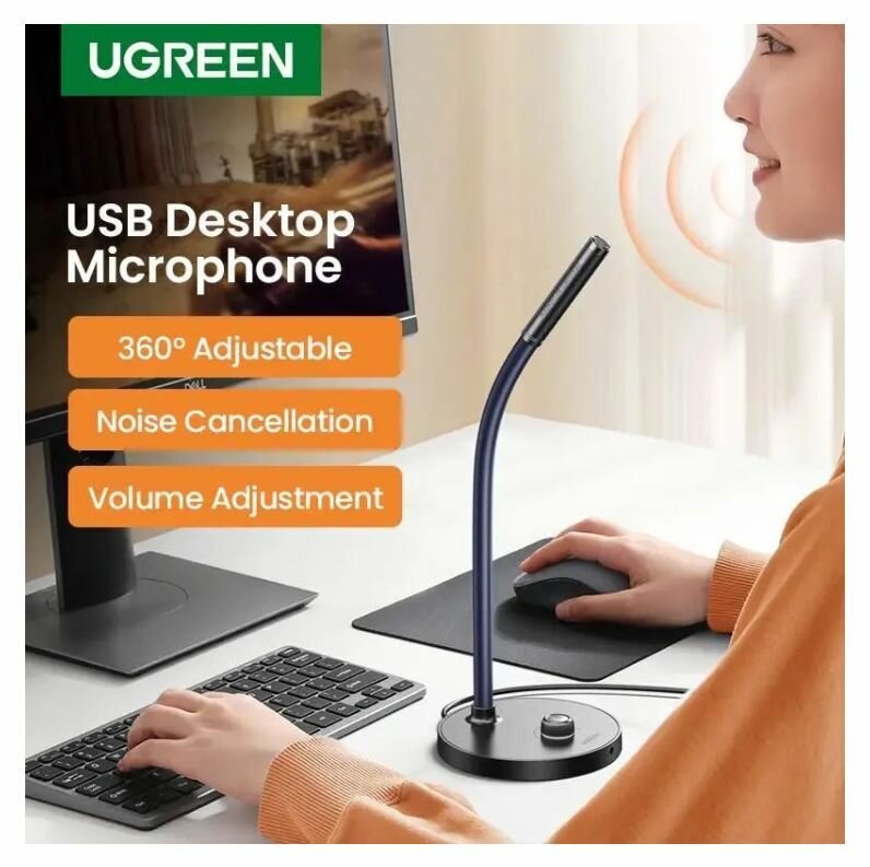 Микрофон Ugreen CM564 90416 с USB настольный Desktop USB Microphone без шумоподавления, черный .