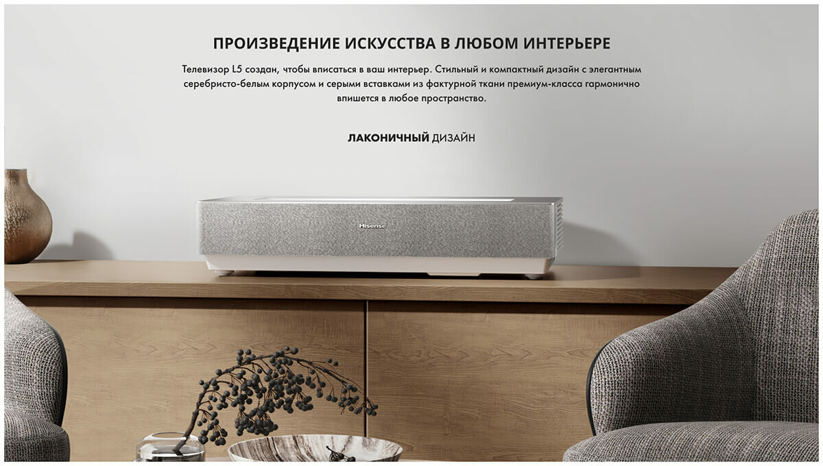 Телевизор Laser Hisense 120" Laser TV 120L5H серебристый 4K Ultra HD 60Hz DVB-T DVB-T2 DVB-C DVB-S DVB-S2 USB WiFi Smart TV
