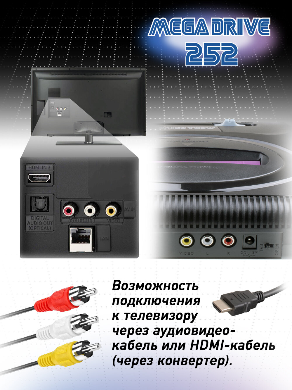 Купить Игровая приставка Mega Drive 252 встроенных игр с HDMI конвертером (16-бит Sega) / Ретро консоль с двумя джойстиками