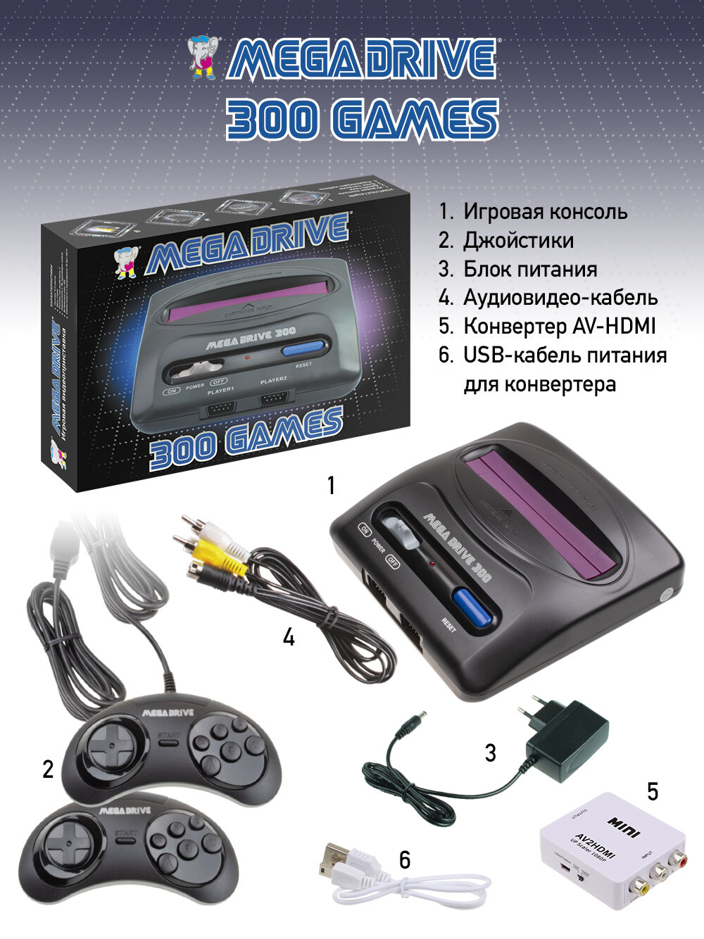 Купить Игровая приставка Mega Drive 300 встроенных игр с HDMI конвертером (16-бит Sega) / Ретро консоль с двумя джойстиками
