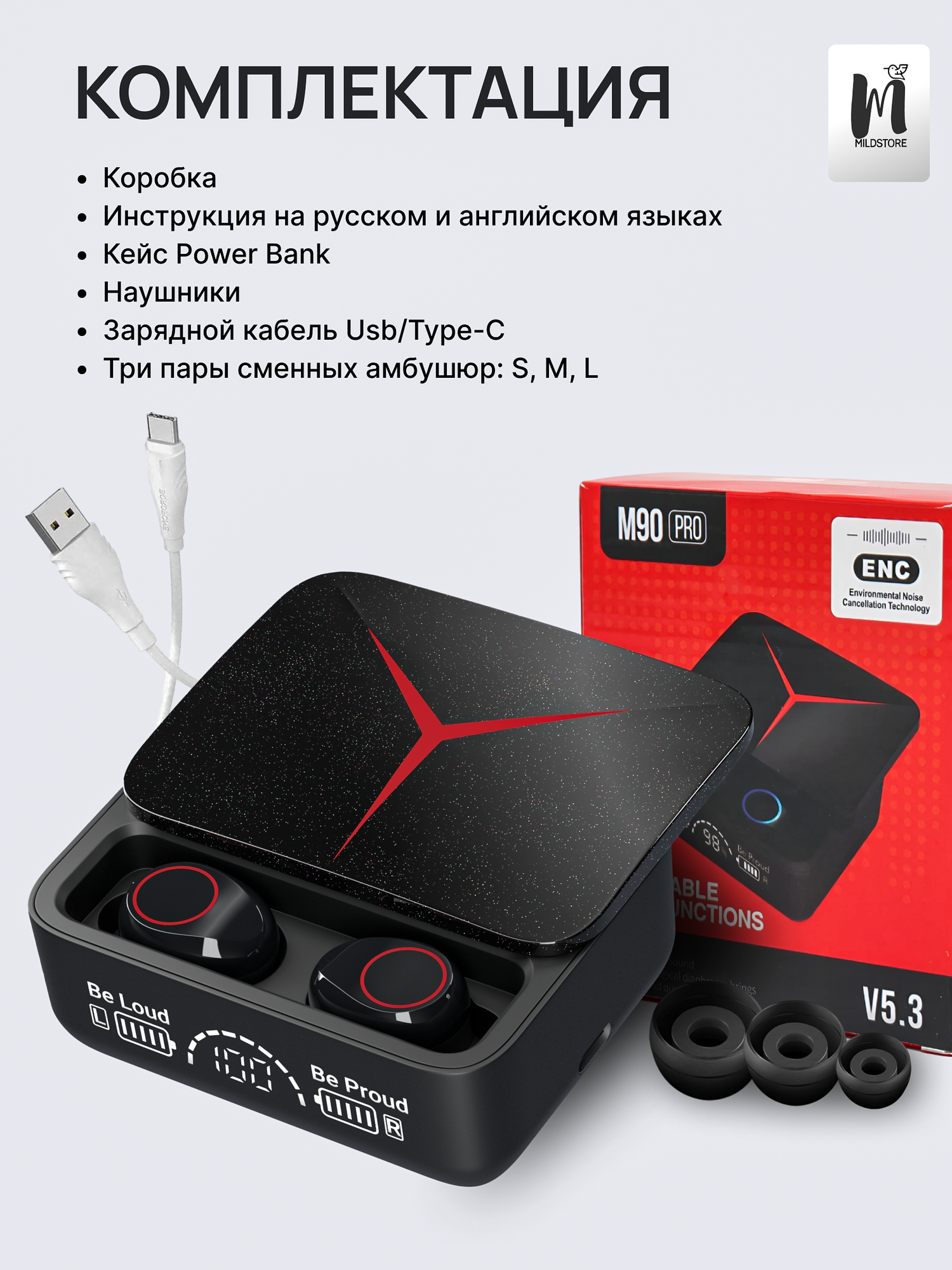 Беспроводные наушники Mildstore ANC с шумоподавлением и PowerBank
