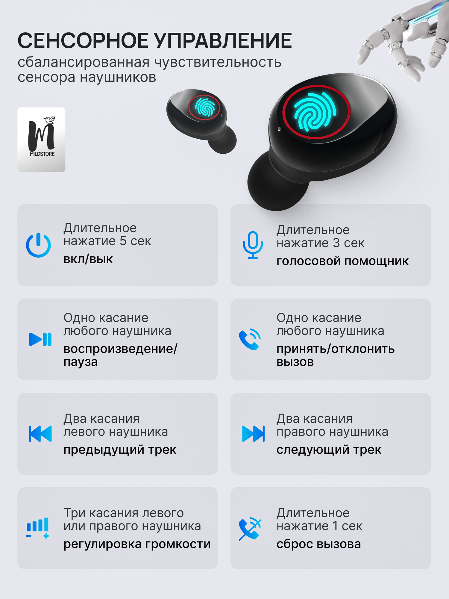 Беспроводные наушники Mildstore с шумоподавлением черные