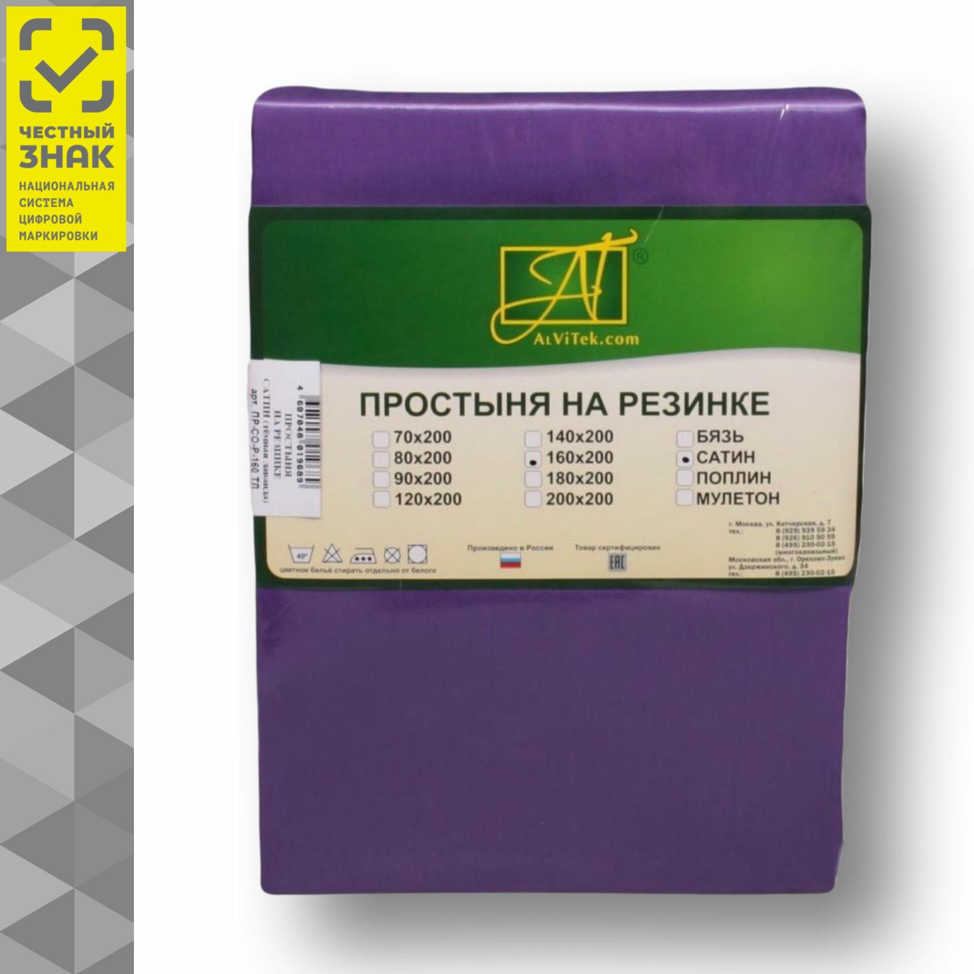 Простынь на резинке AlViTek (АльВиТек) 90х200х25, 1,5 спальная, Натяжная, Сатин, 100% хлопок, Цвет сиреневый, AALV-ПР-СО-Р-090-ЛГРЕЙ