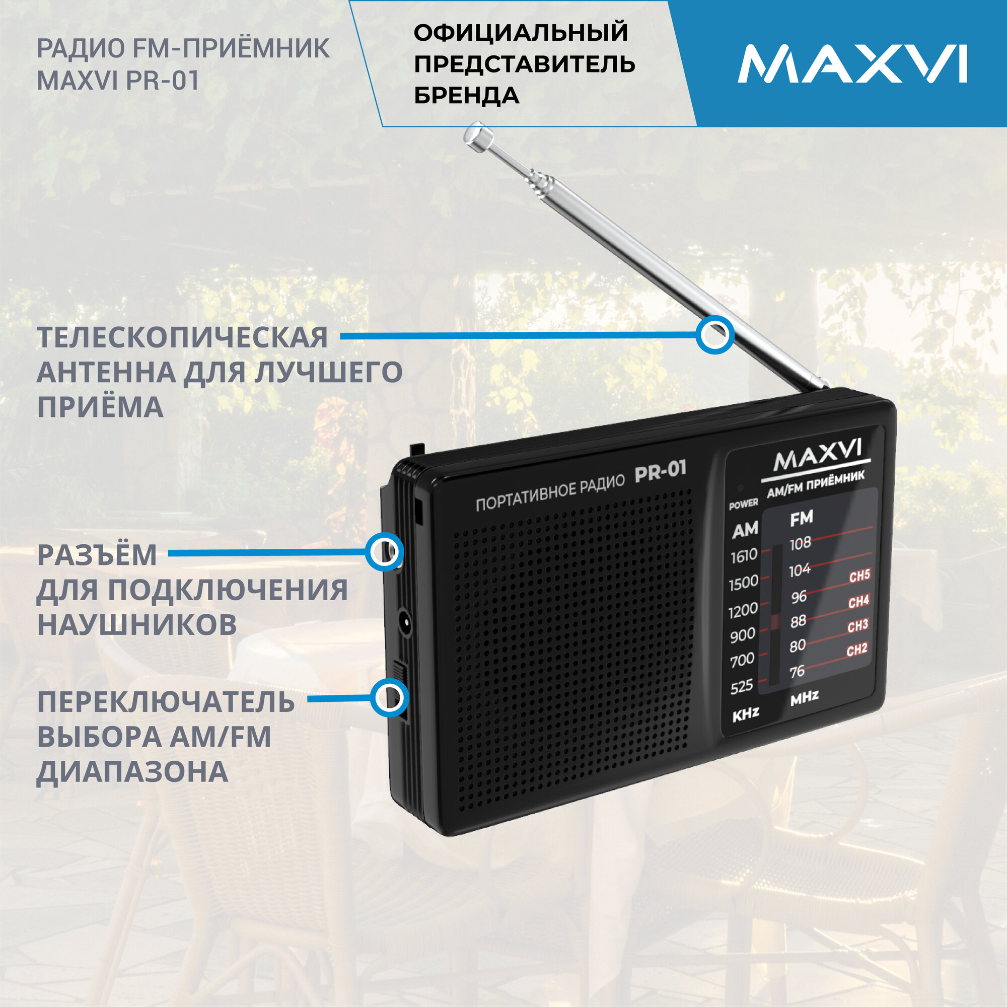 Беспроводное переносное радио FM-приёмник Maxvi PR-01 black интересное: