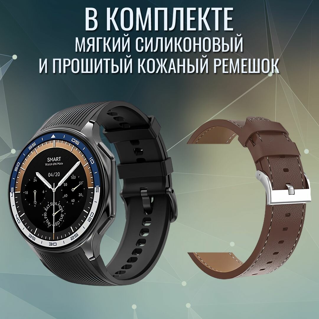 Умные смарт часы GoodSmart Watch X строгие чёрно-металлические с серым отливом и 2 ремешка в комплекте