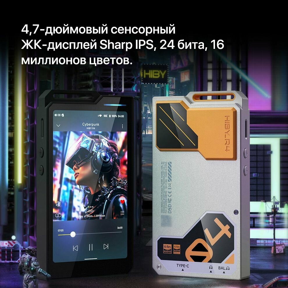 HIBY R4, цвет серебристый, плеер музыкальный, 64 Гб, microSD