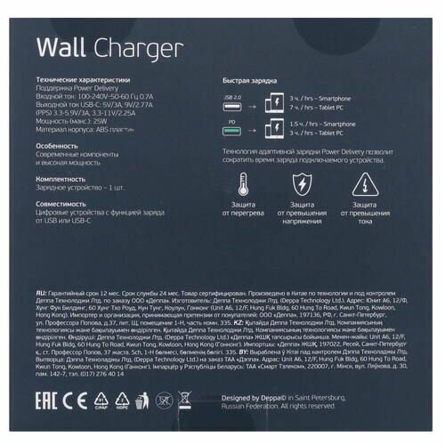 Сетевое зарядное устройство USB Type-C, Power Delivery, 25Вт, черный, Deppa, Deppa 11427 интересное: