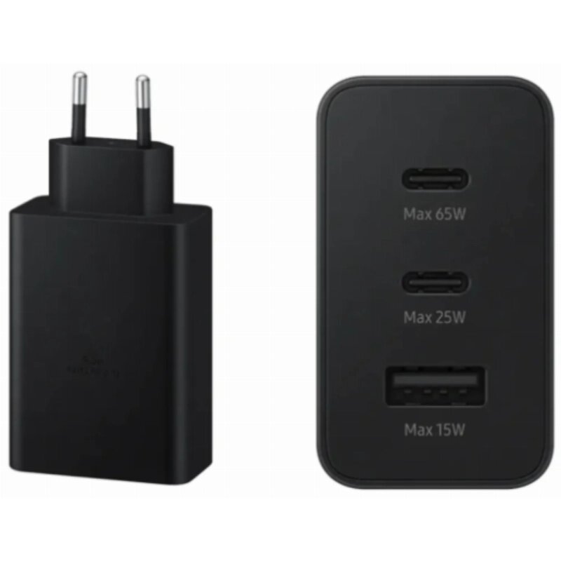 Сетевое зарядное устройство Samsung EP-T6530NBEG 65W 2xType C + USB, черное