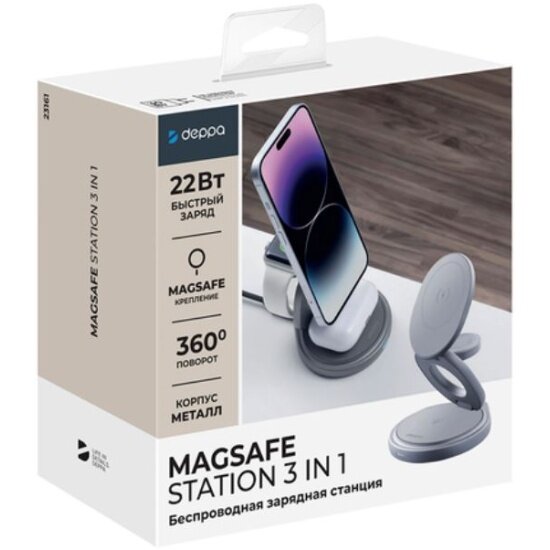 Беспроводное зарядное устройство Deppa 22 Вт 3 в 1 MagSafe Rotation QI (23161)